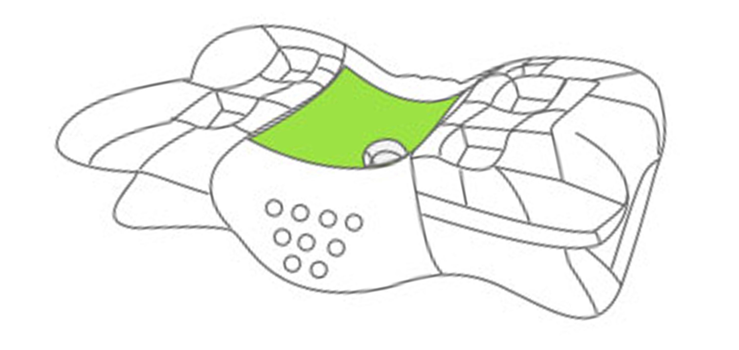 それでもしっくりこない、痛みが増すというような方のために、逆サイドに高さを抑えた設計を施しています。