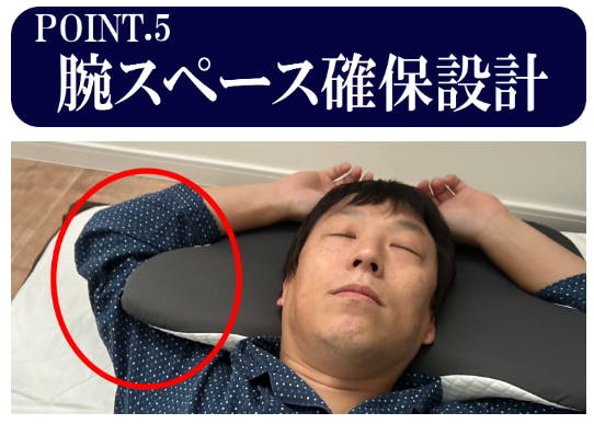 腕を自由に動かせるように、腕を上げられるスペースを設けました。