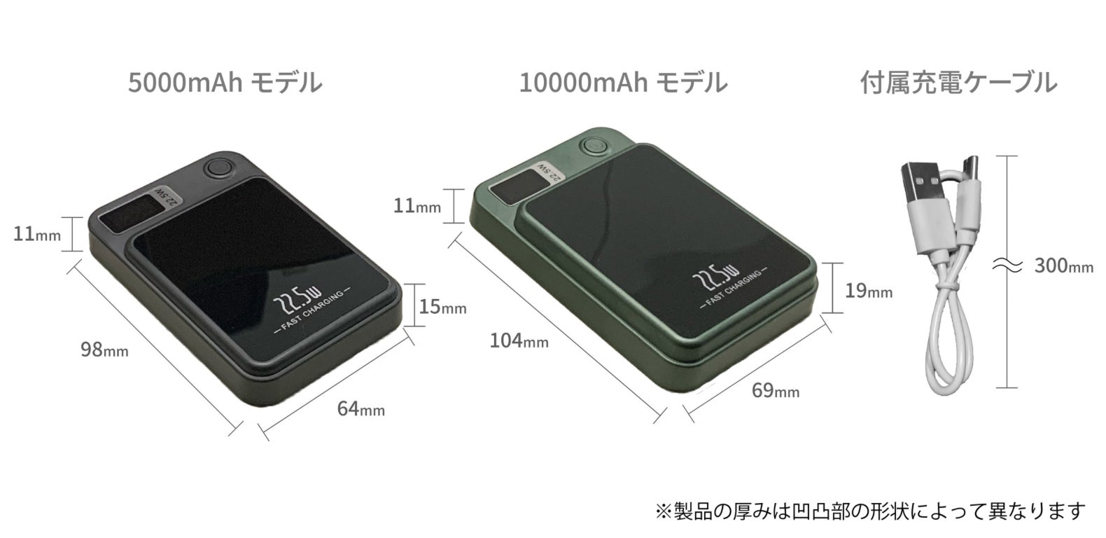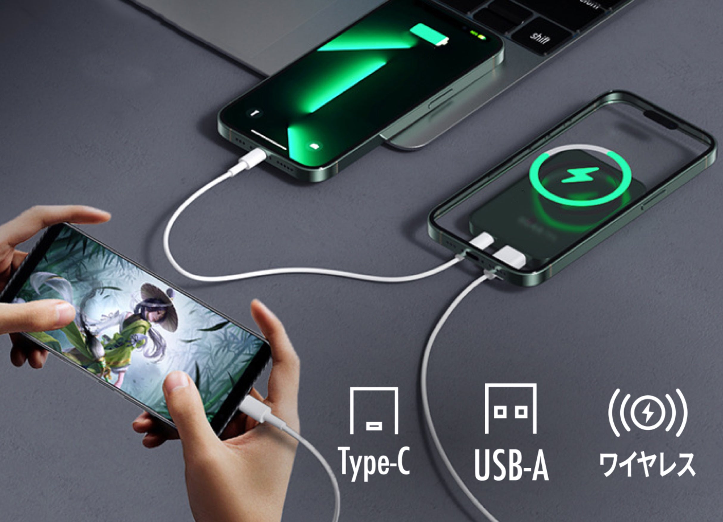 (本製品には、バッテリー、ケーブル、Lightning端子、Micro-USB端子、Type-C端子が含まれます。)