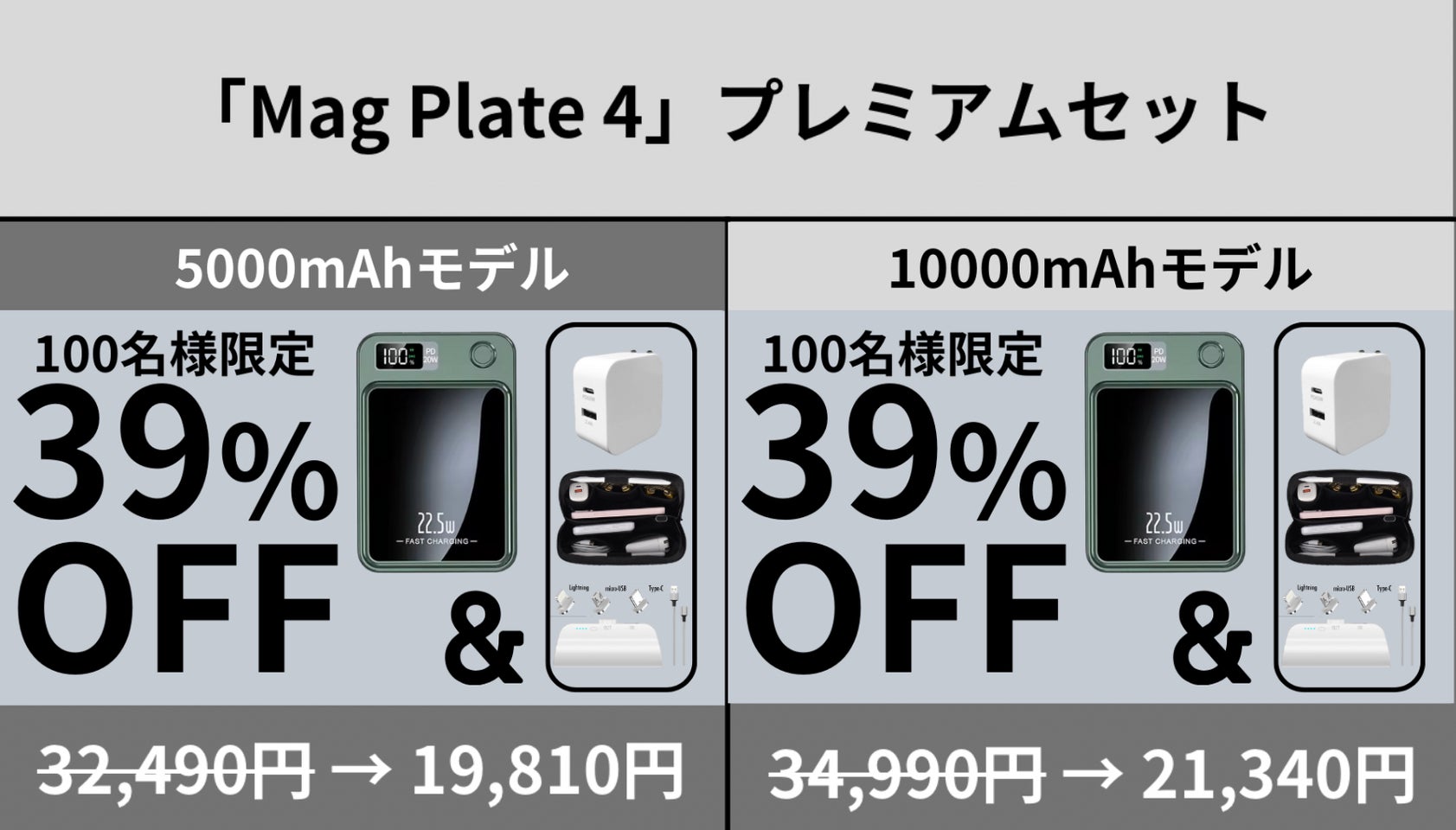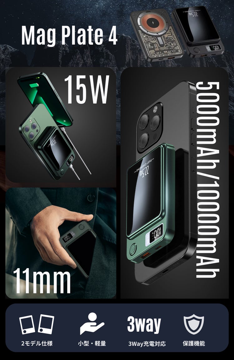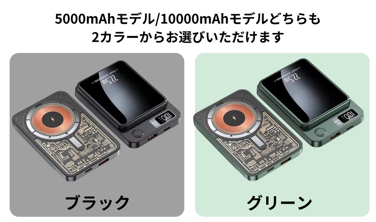 「Mag Plate 4」は5000mAhと10000mAhの2種類の大容量で展開。利用シーンやご使用端末に合わせた選択が可能です。