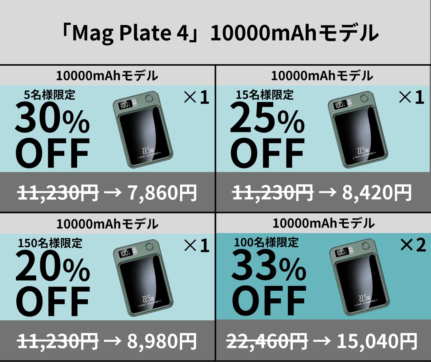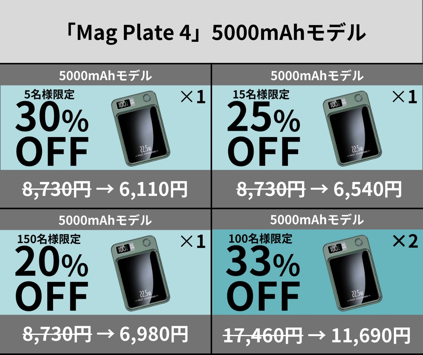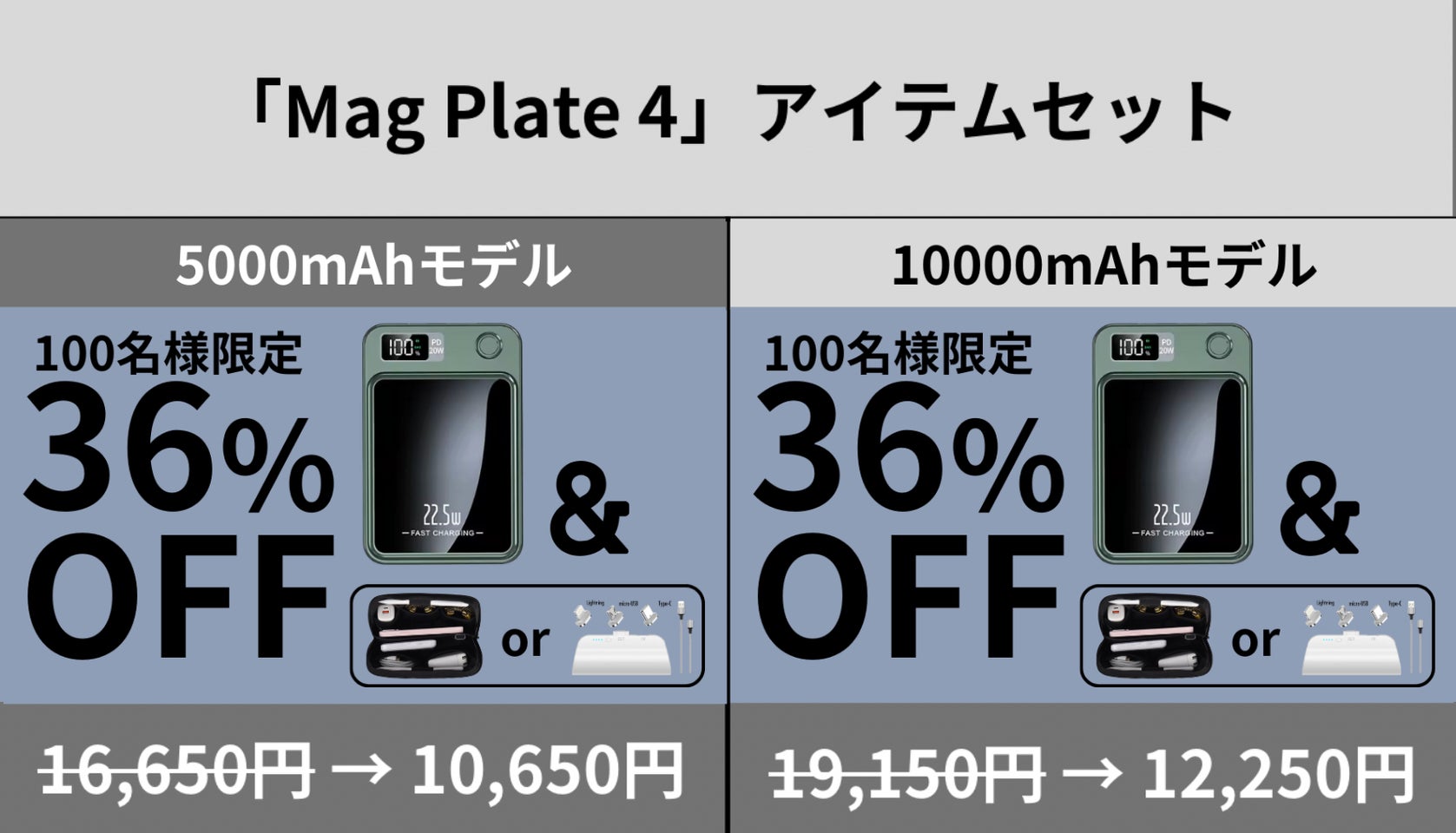 「Mag Plate 4」は5000mAhと10000mAhの2種類の大容量で展開。利用シーンやご使用端末に合わせた選択が可能です。