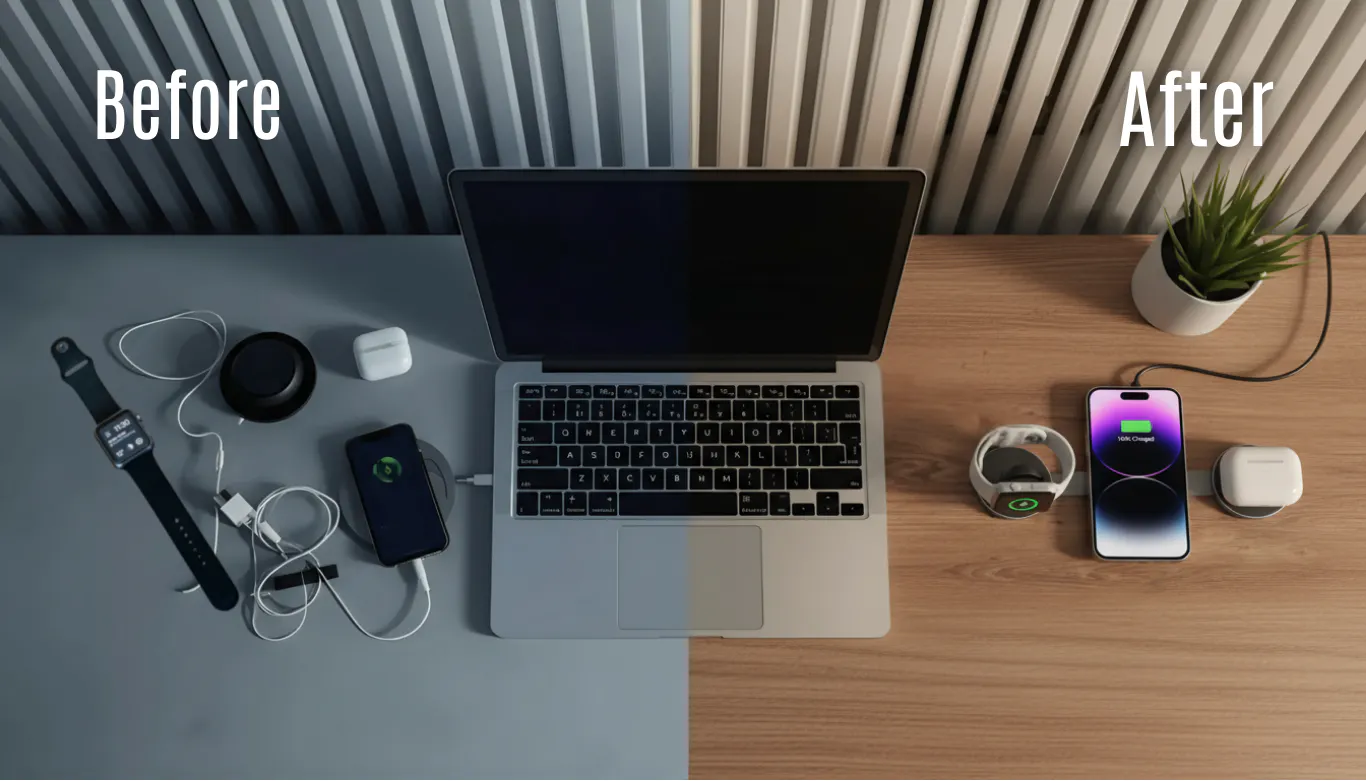 ▶︎ 折りたためる、最小級の3 in 1充電器