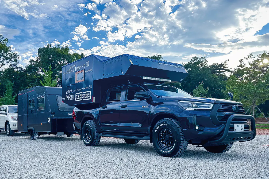 さらにはキャンピングカービルダーとしてピックアップトラック(ハイラックスのような形状)専用のキャンピングカーを制作しており間も無く市販化もされます!(次期発表)