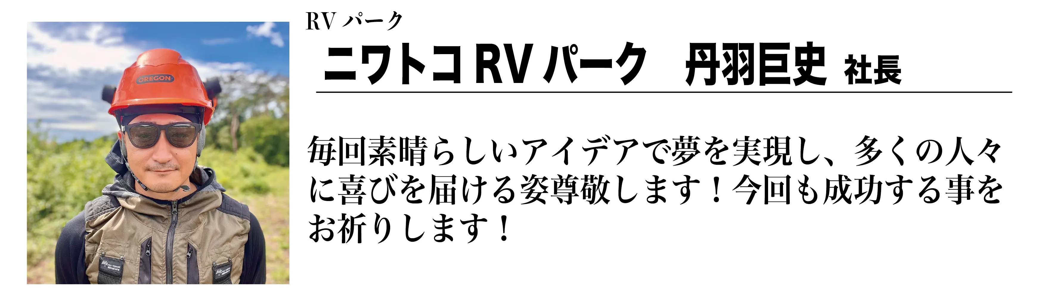 ▲ニワトコRVパーク 丹羽巨史社長