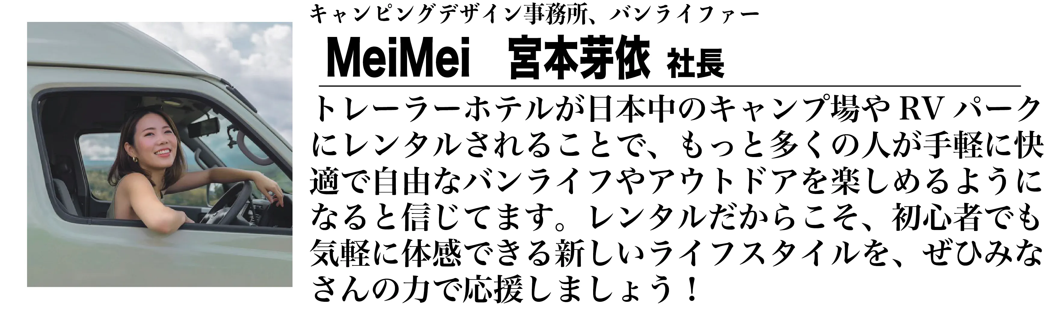 ▲キャンピングカーデザイン事務所 宮本芽依社長