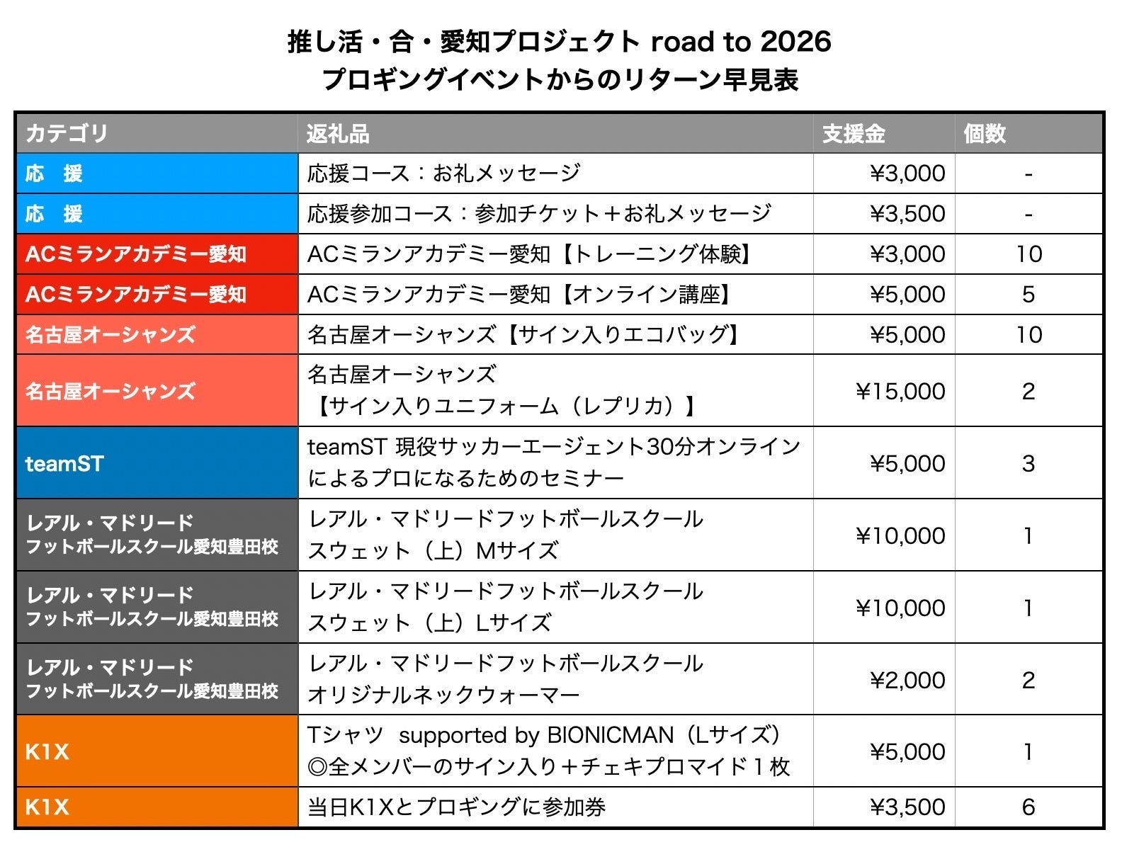 本プロジェクトの志に賛同してくださった、名古屋オーシャンズ、ACミランアカデミー、レアル・マドリードなどのクラブチーム、愛知県をはじめとする10近くの地元スクール生とその保護者