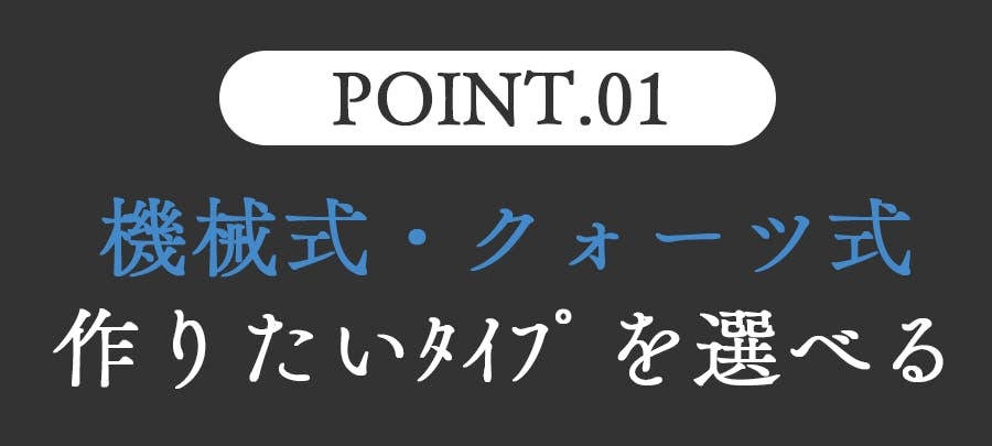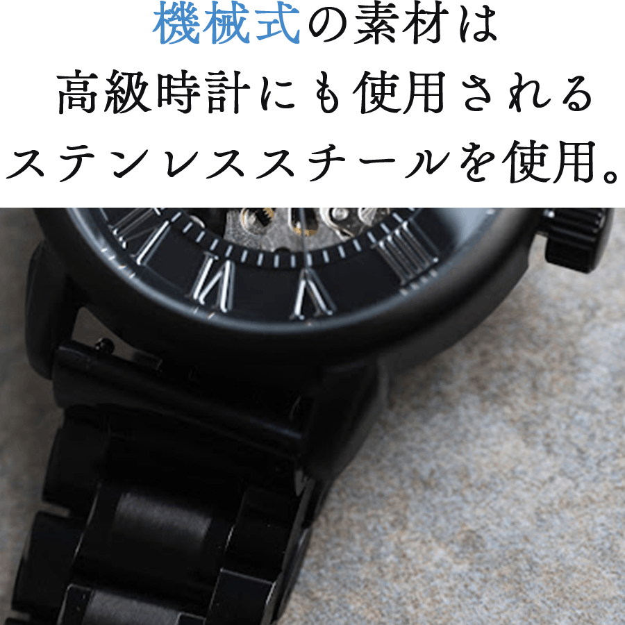 A.機械式時計とはクォーツ時計が電池の力で時を刻むのに対して、ムーブメント(時を刻む時計の心臓部)の中に多くの歯車があり、ぜんまいの役割を果たし時を刻む時計のことです。その歯車を動かす為にご自分の手で回すものを『手巻き』、腕に着けて振動で動くものを『自動巻き』と言います。この機械式時計は『自動巻き』になりますので、電池交換やご自分の手で回す事なく時を刻む時計になります。