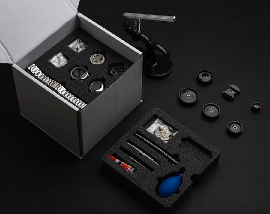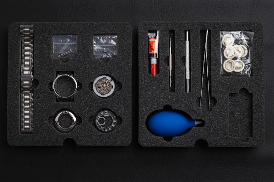 キットには、時計の組み立てに必要なすべての工具が付属しています。また、動画をダウロードし時計製造が初めての方でも容易に創ることが可能となっています。