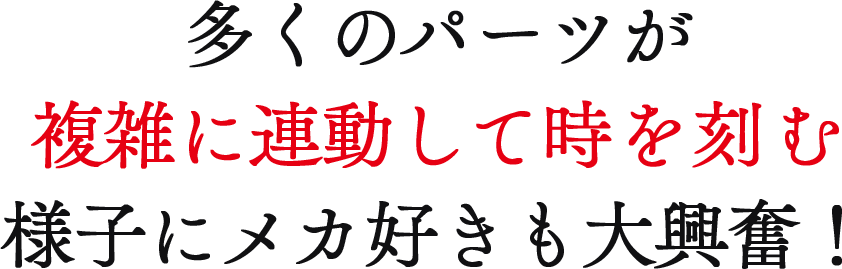 ゼンマイを動力源とし、4つのパーツが連動して動きます。