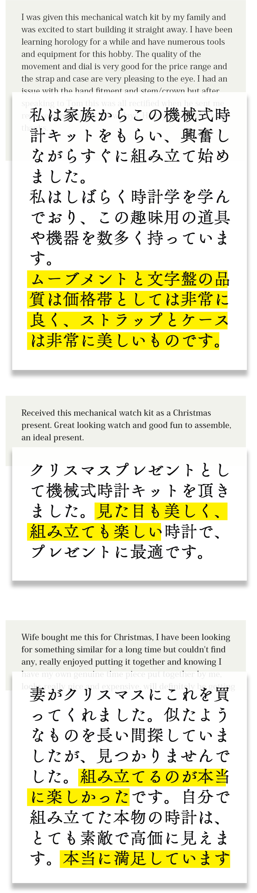 我々の手作り腕時計キットは、時計を組み立てるときにあなたを集中力と静けさの場所に連れて行き、手首の時計として一生誇りに思うでしょう。