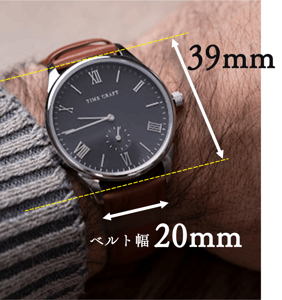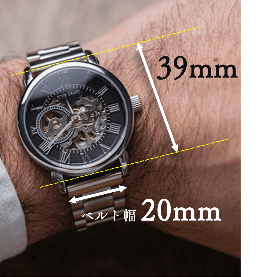 ケース:サファイヤガラス(幅=39mm)シルバー・黒
