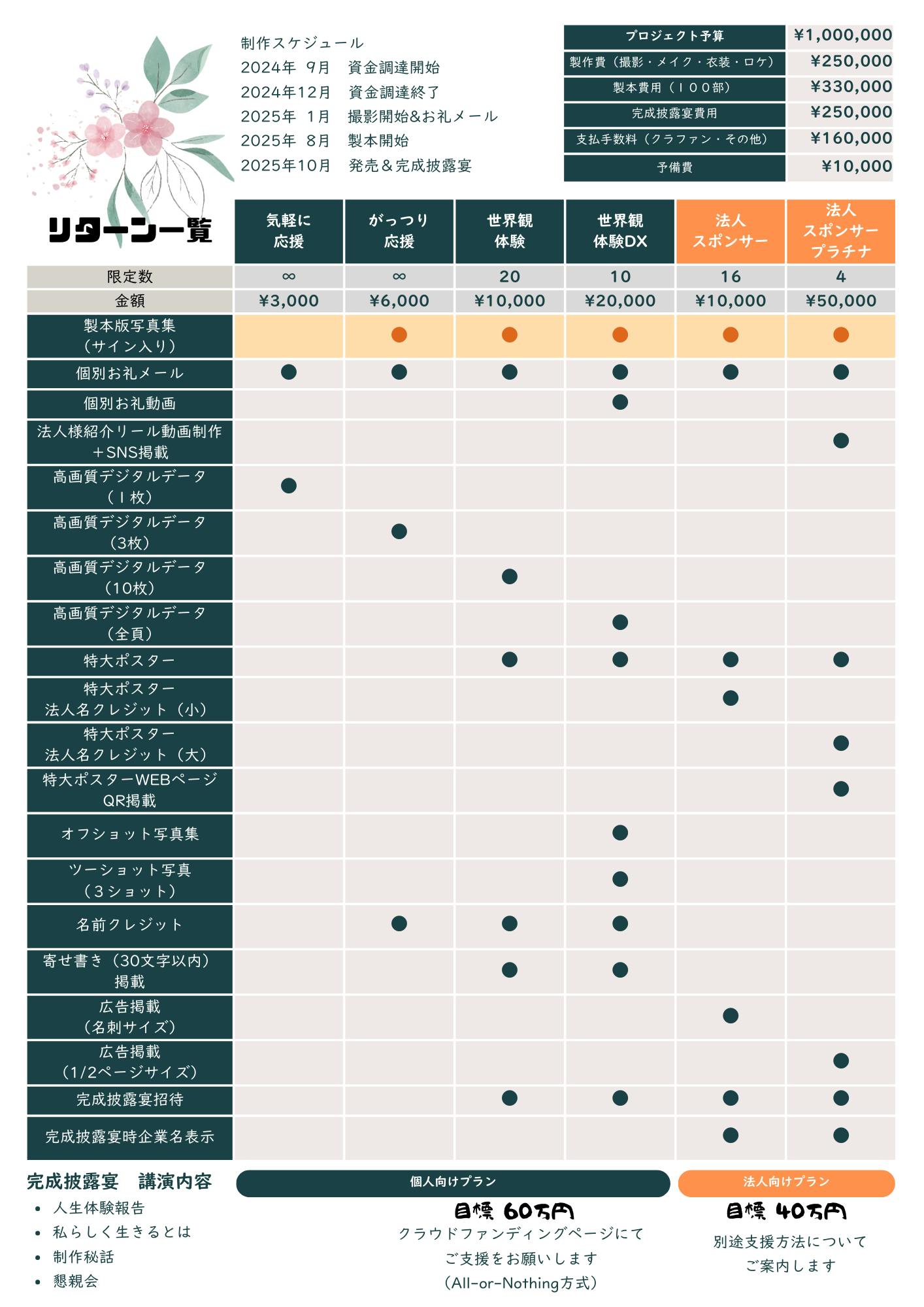 製本後のサイン入り写真集をリターンとして用意させていただき
