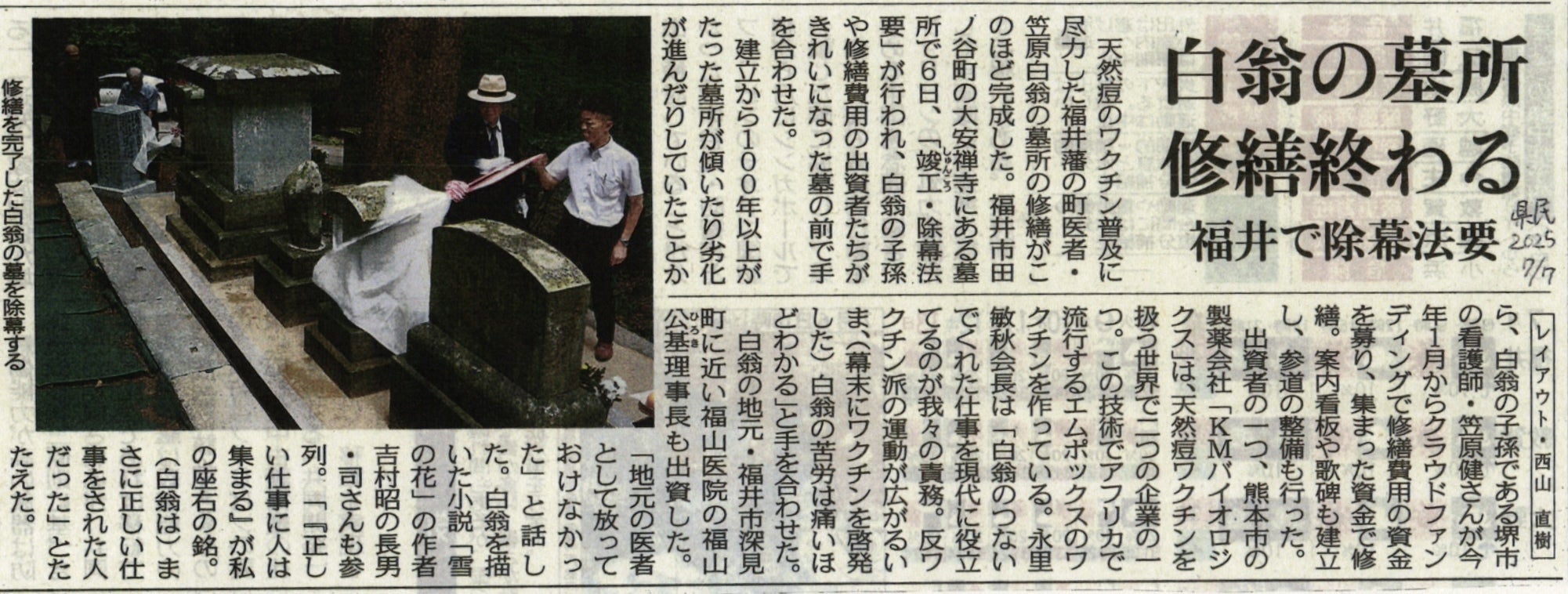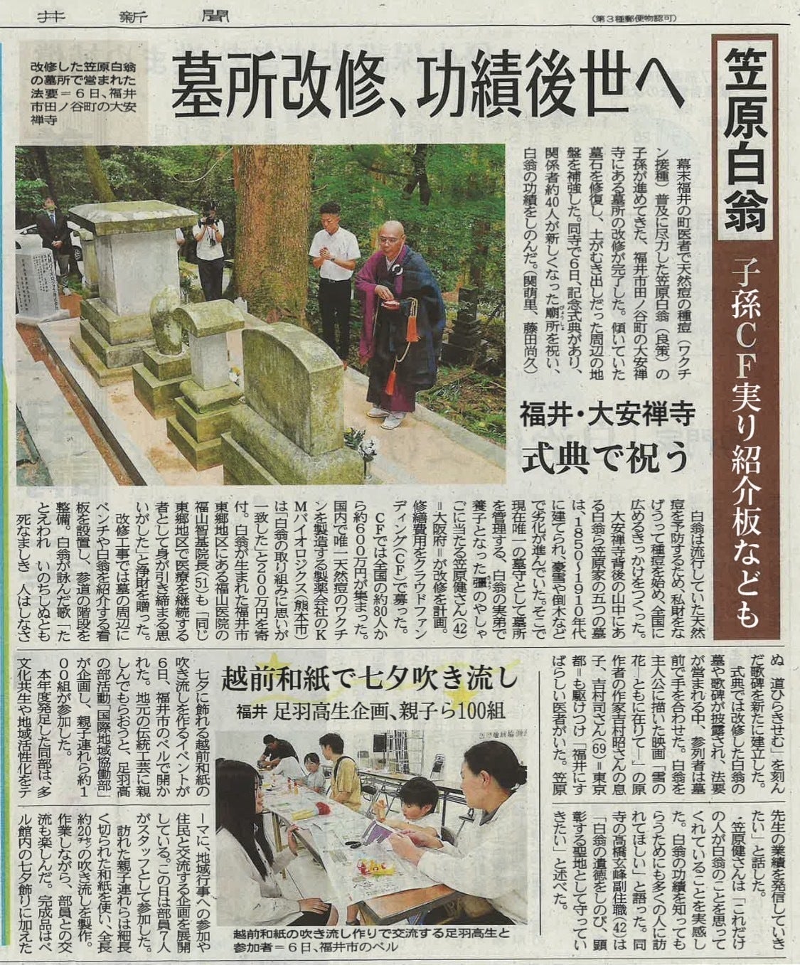 皆様福井新聞に掲載記事です。記者の皆様にも感謝申し上げます。笠原健 拝