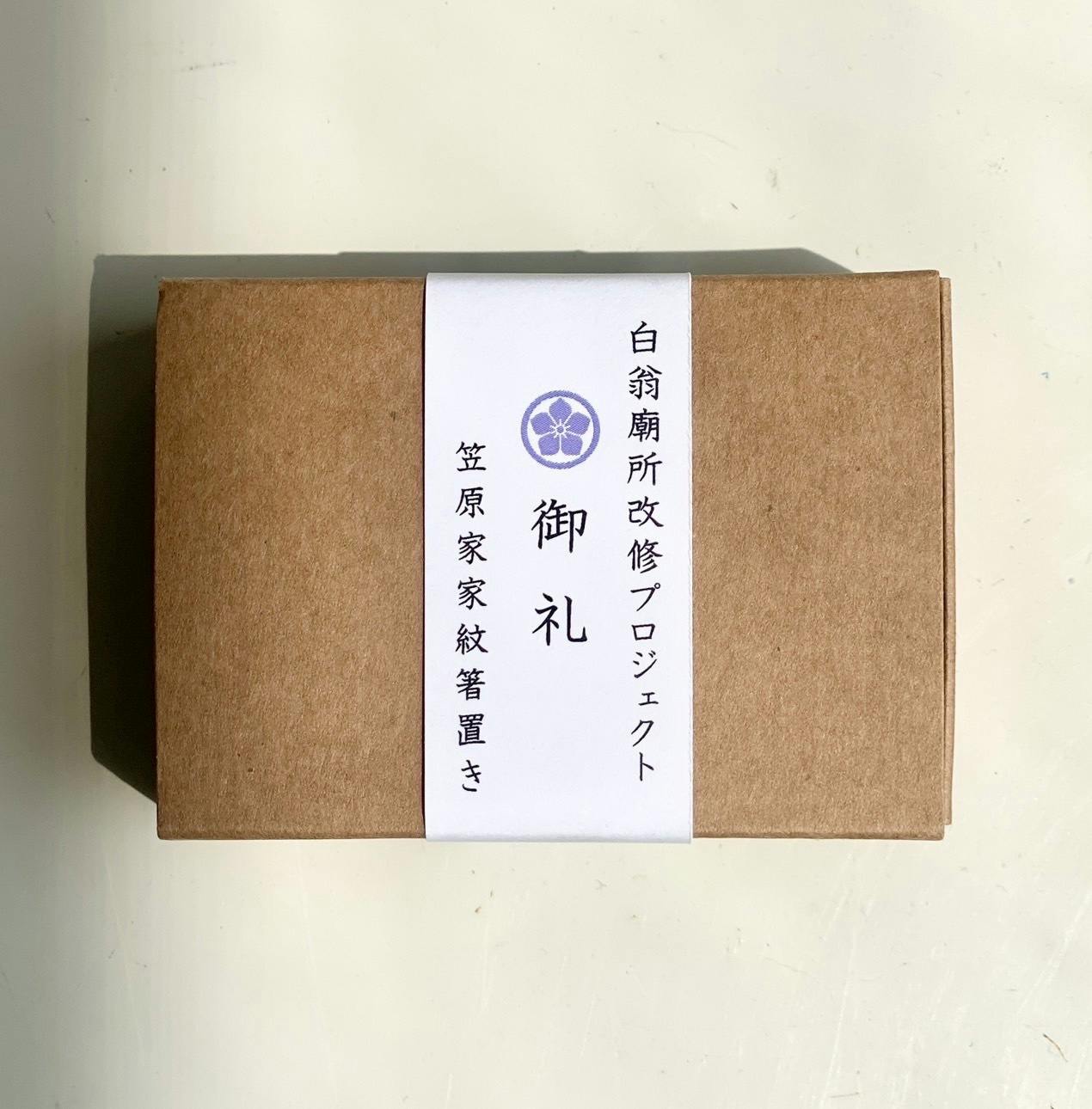 箸置きは磁器製です。そのため、リターン品の当該支援者(3万円と10万円)の方々に、破損なくお届けできるよう、この箱に入れてお届けさせて頂く所存です。