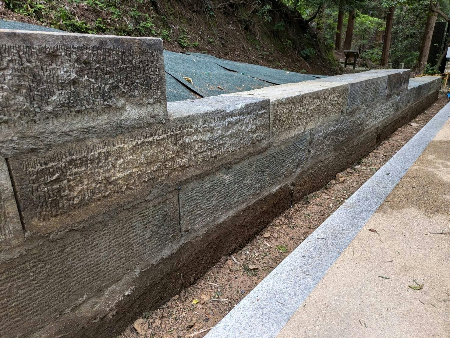 改修前の写真と比べると、様変わり具合が一目瞭然です。とても綺麗になりました。墓石の保全に直接つながる修繕です。