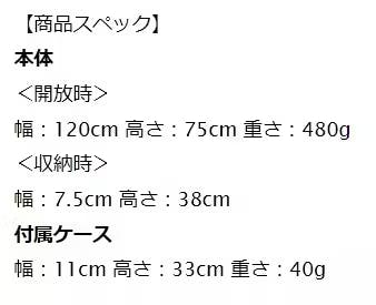 A:開いた状態の直径が120cm、高さが75cmになります。収納時は幅7.5cm、高さが38cmになります。