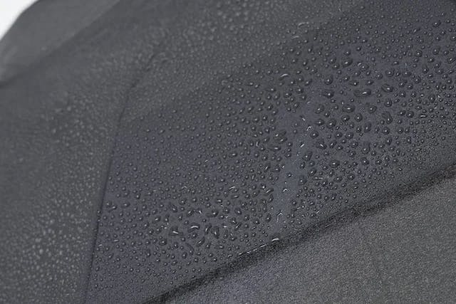 水滴がコロコロと生地の表面を転がって落ちていき、雨粒をしっかり落とします。