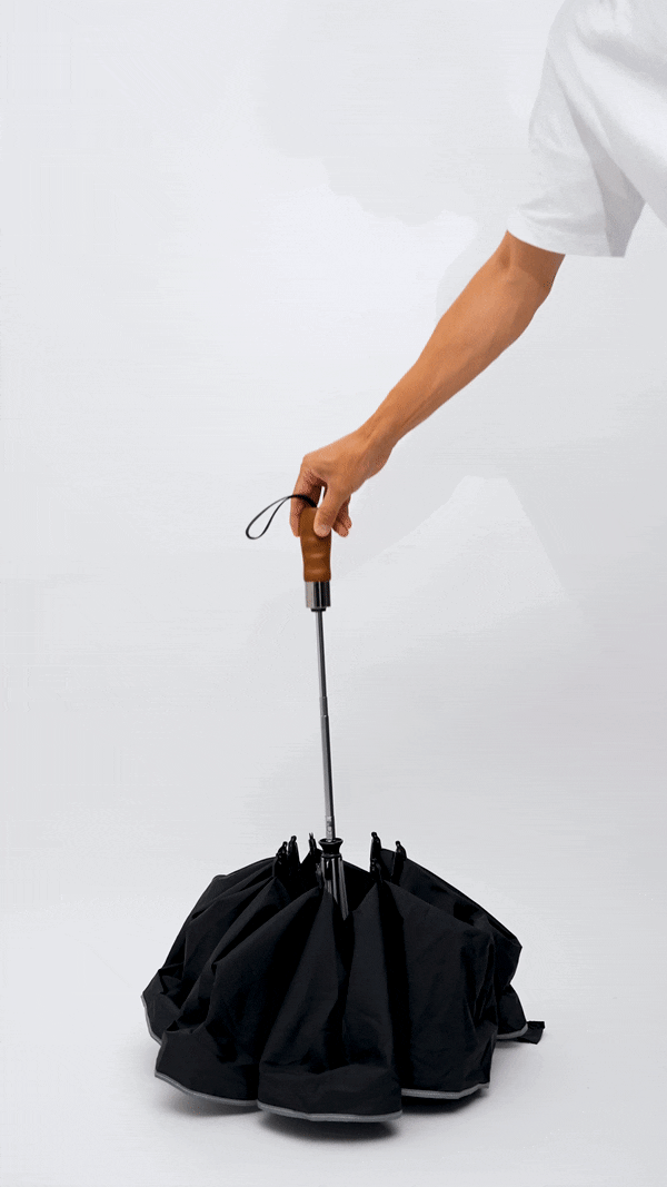 通常の傘は濡れた部分が外側になりますが、逆折りたたみ式にすることで濡れた部分を内側に。