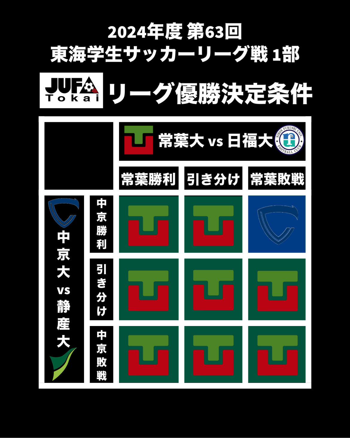 『2024年度 第63回 東海学生サッカーリーグ戦 1部』も残り1節となりました。