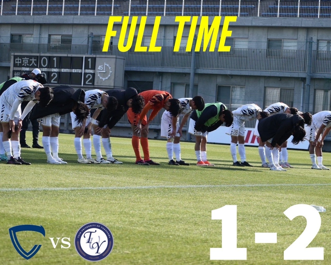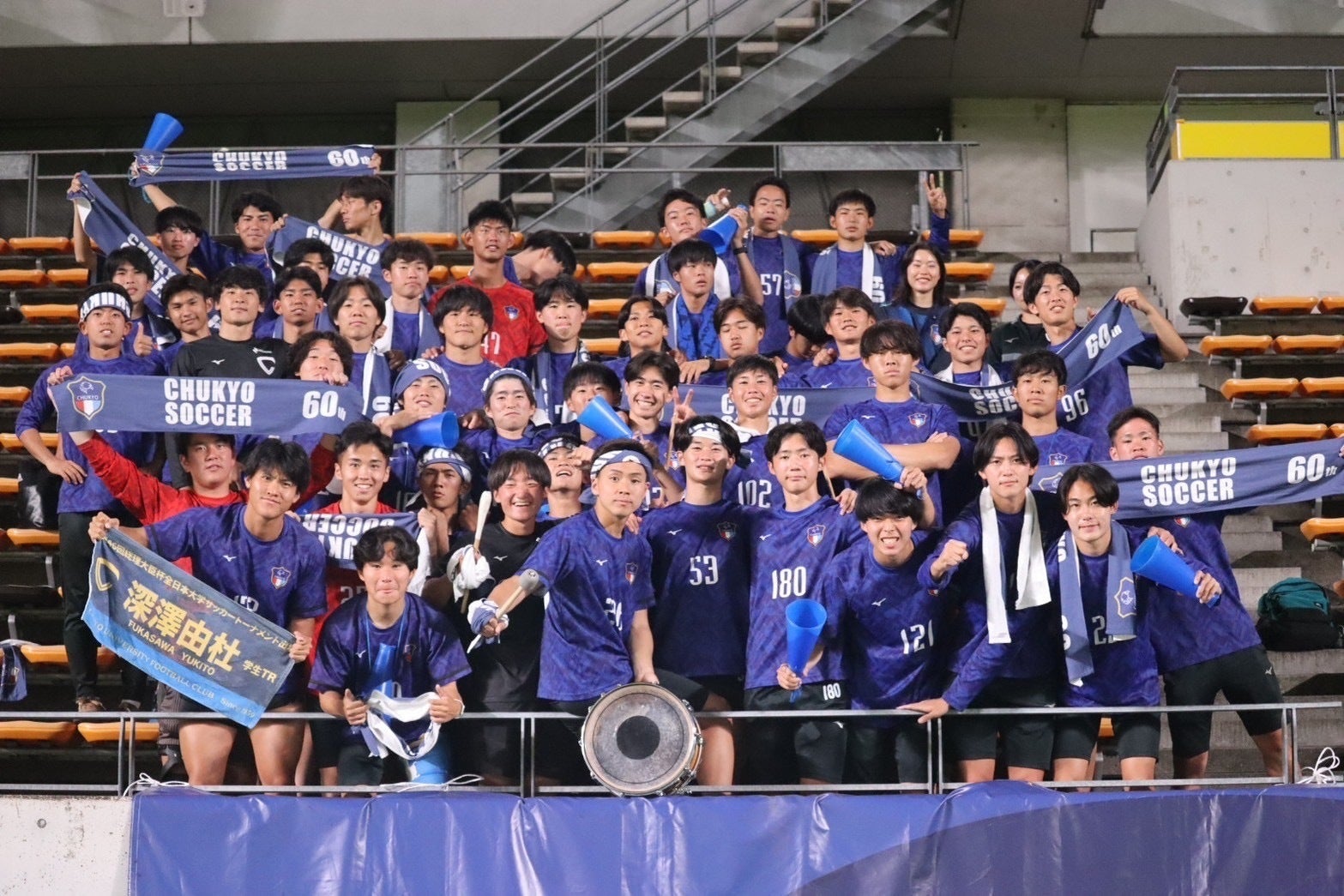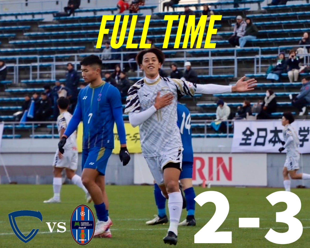 2024/12/19 16:14こんにちは!昨日(12/18)に『MCCスポーツ presents 2024年度 第73回 全日本大学サッカー選手権大会 決勝ラウンド グループステージ第3節』桐蔭横浜大学戦が行われました。グループステージ突破には、勝利が絶対条件となった一戦は互いに一歩も譲らない拮抗した試合展開となった。後半26分、4.桒田大誠(暁星国際高校 4年)のロングフィードを受けた28.光本和馬(中京大学附属中京高校 3年)が左サイドで起点を作る。一度は相手にクリアされるものの、10.武藤寛(市立船橋高校 3年)がセカンドボールを回収する。その後、7.深澤壯太(大阪桐蔭高校 4年)、6.押富大輝(ヴィッセル神戸U-18 4年)と繋ぎ、最後は11.有働夢叶(興國高校 4年)がワントラップから右足を振り抜き、先制点を奪うことに成功する。(1-0)後半36分、4番からのロングフィードに右サイドで反応した12番が11番へパスを繋ぐ。11番が内側に切り返し、左足でGKも出ることの出来ない絶妙な場所へクロスを上げる。10番が上手くマークを外しゴールを決め、試合を振り出しに戻される。(1-1)後半41分、ビルドアップの中で15番にボールを奪われ、12番にスルーパスを送られる。12番がワントラップから右足でゴールに流し込み、逆転を許してしまう。(1-2)その後も猛攻を仕掛けるも、追加点を奪うことが出来ず、1-2で試合終了した。大会方式が一新した今大会は予選ラウンドをPK戦の末、勝利することができ決勝ラウンドに進出した。しかし、グループステージは全ての試合で先制点を奪うが、逆転を許してしまい、3連敗でグループステージ敗退となった。今シーズンの全国大会は総理大臣杯に引き続きベスト16で幕を閉じた。4年生の皆さん、本当にお疲れ様でした。次のステージでの活躍を期待しています!今回、初めての試みとなったクラウドファンディングにご支援いただいた皆さん、誠にありがとうございました。目標を達成することはできませんでしたが、常に中京大学体育会サッカー部へ熱い応援が選手たちの頑張る活力や励みとなっていました。来シーズン、今シーズンよりも良い結果を残せるようにチーム一丸となり頑張ります!今後とも中京大学体育会サッカー部への熱い応援、何卒よろしくお願いいたします。中京大学体育会サッカー部 主務 福井暁阿 もっと見る