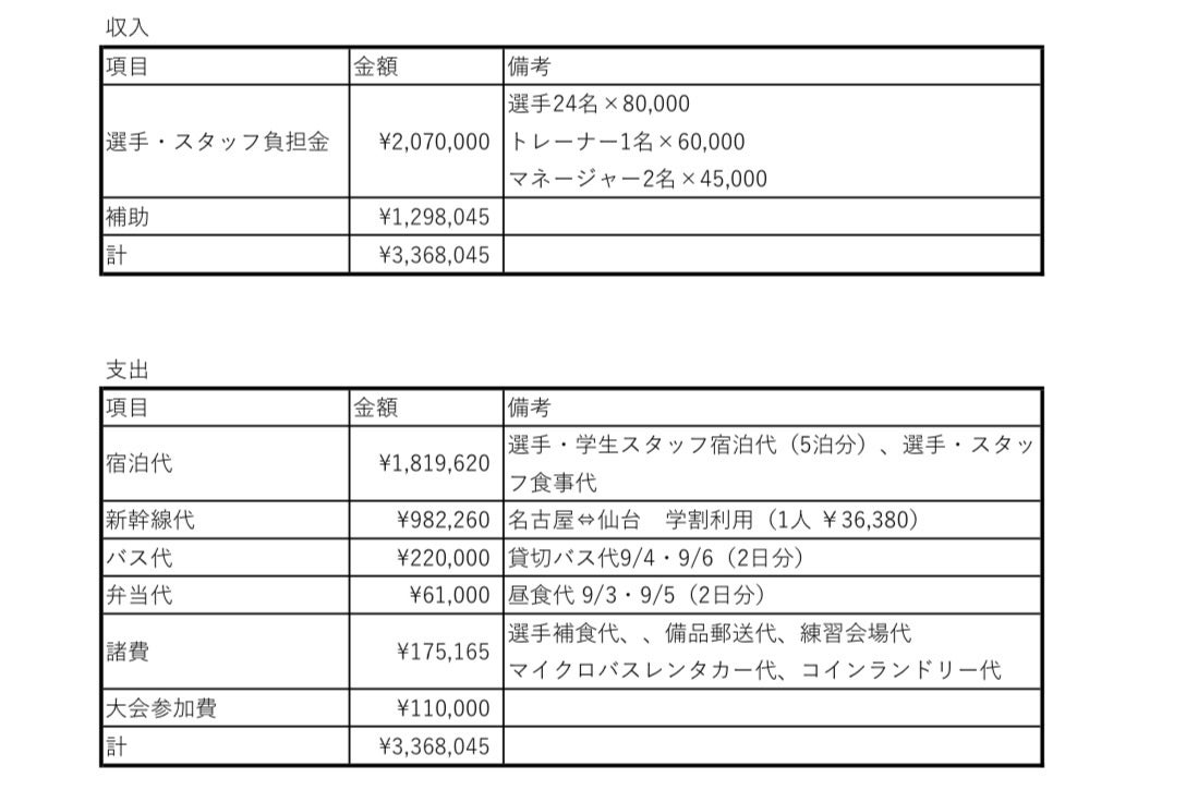 予算の関係上、選手・学生スタッフは学業や練習の傍らアルバイトを行い、遠征費を各自で支払っている現状があります。そのため、選手たちやその家族の負担が大きいという厳しい現状があります。