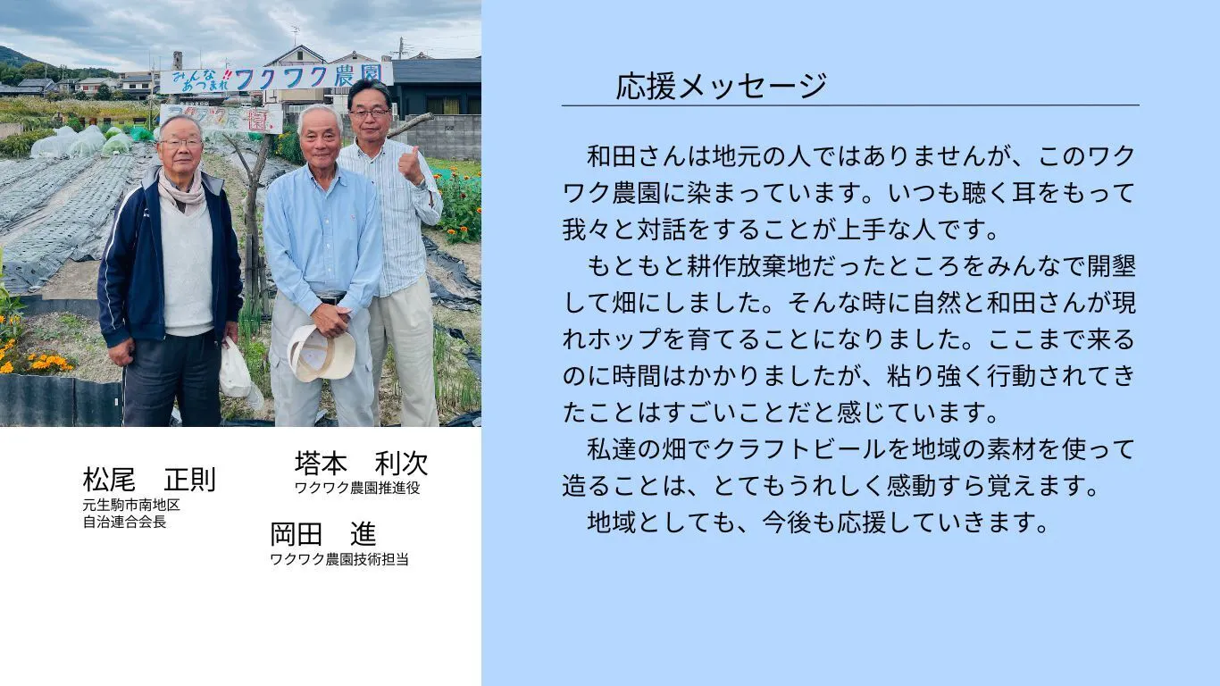 地域の方と共に生駒の地で作られたホップ