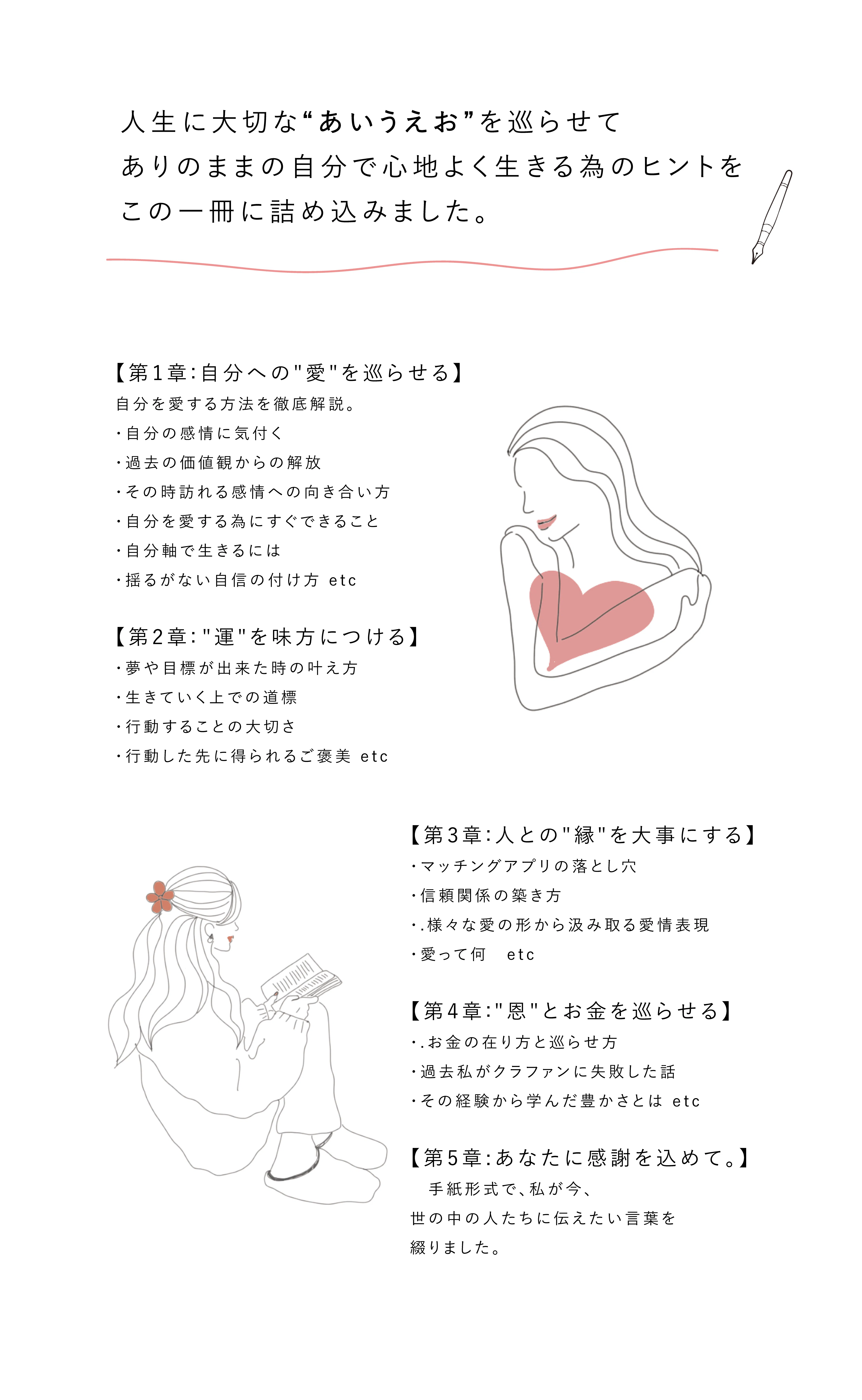 今の現状に悩んでいる方がこの本を読むことで、自分への愛と心から望む生き方を見つけるきっかけとなってほしい。
