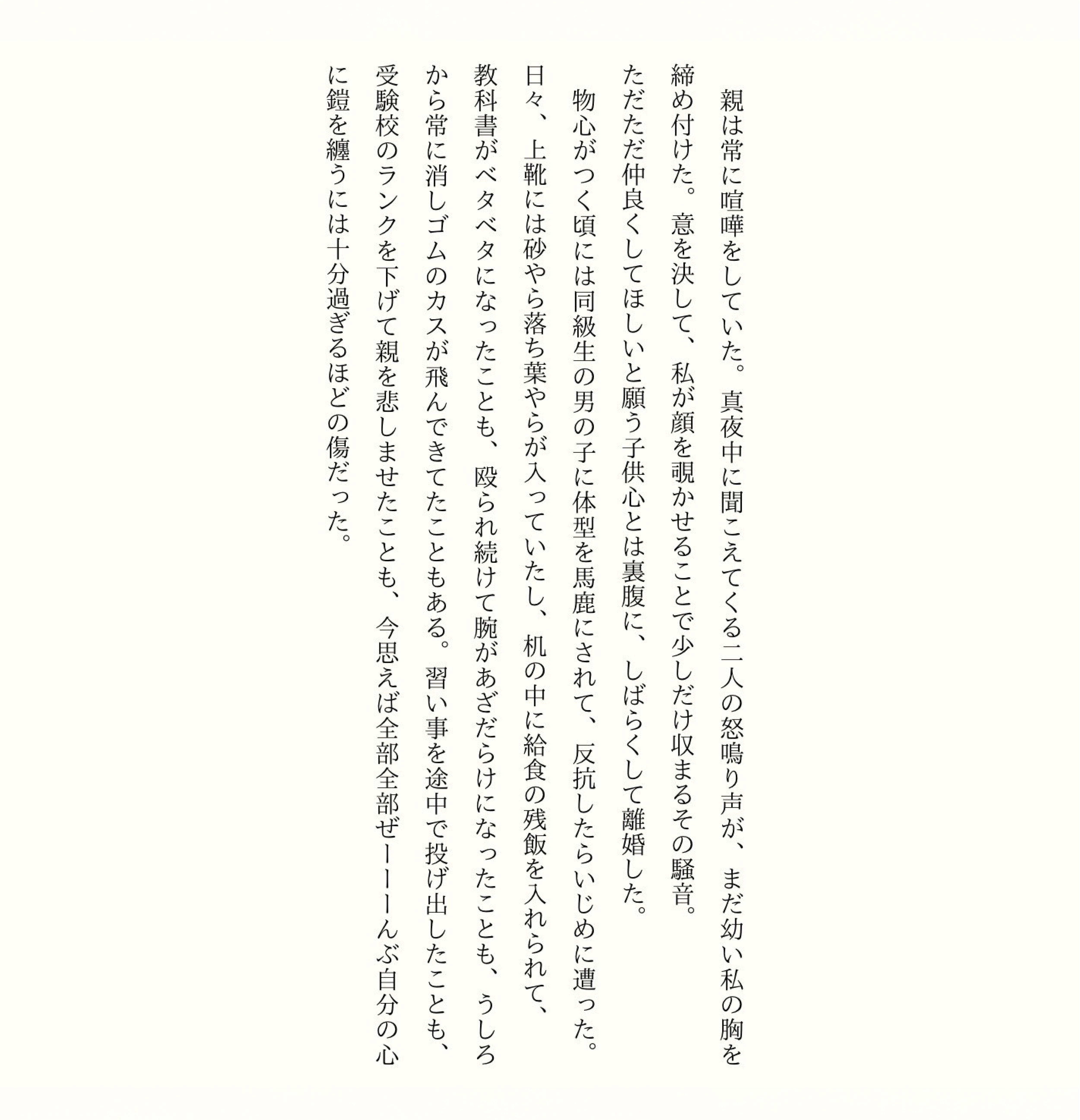 それが、何も持ってない子供が親に返せる唯一の愛だと思っていたから。