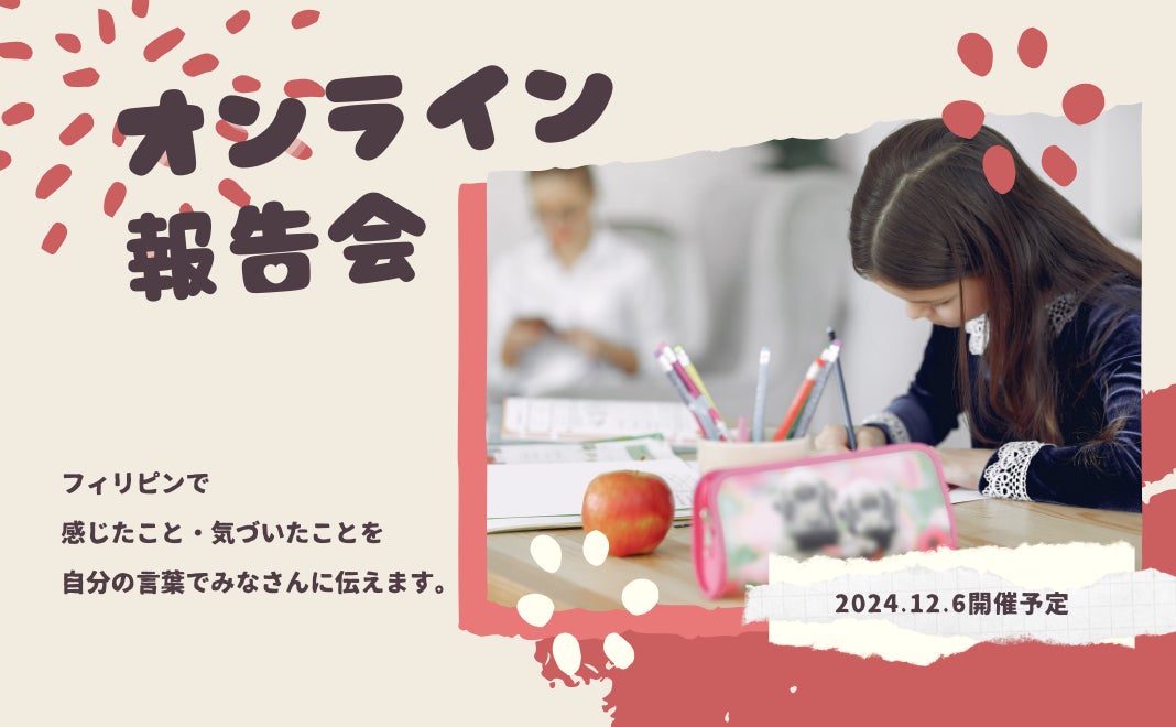 2024/11/25 08:52みなさん、こんにちは。フィリピン旅行も残すところあと2日。娘が感じたことは、また改めて活動報告するとして…母が見る娘の変化をちょっとだけ書きます。娘は元来、人前にでる事を好まず「みんながするから、〇〇する」みたいな同調圧力に負けるタイプでした。なので、自分から何かをする!って事はなかなかなく誰かに言われて渋々…って感じの子です。学力や物事を見る目は高いと思いますが、だからこそ「もったいない」とずっと思ってました。今回のフィリピン旅行はそんな娘が何か気づいて感じてくれたら…って私がけしかけた部分もありました。 旅をする中で、娘の何かが随分と変わり「英語で何と言えばいいのかな?」「私がお金、払いたい!」とグイグイ来るようになりました。そして「もっと英語を話せるようになりたい」「留学するならメイ先生がいい」と言っていました。(英会話レッスンのメイ先生、真ん中赤い服の先生と)そんな日々の気づきはインスタのストーリーでupしています。よかったら見てください!インスタはこちら もっと見るいよいよ、明日行きます。