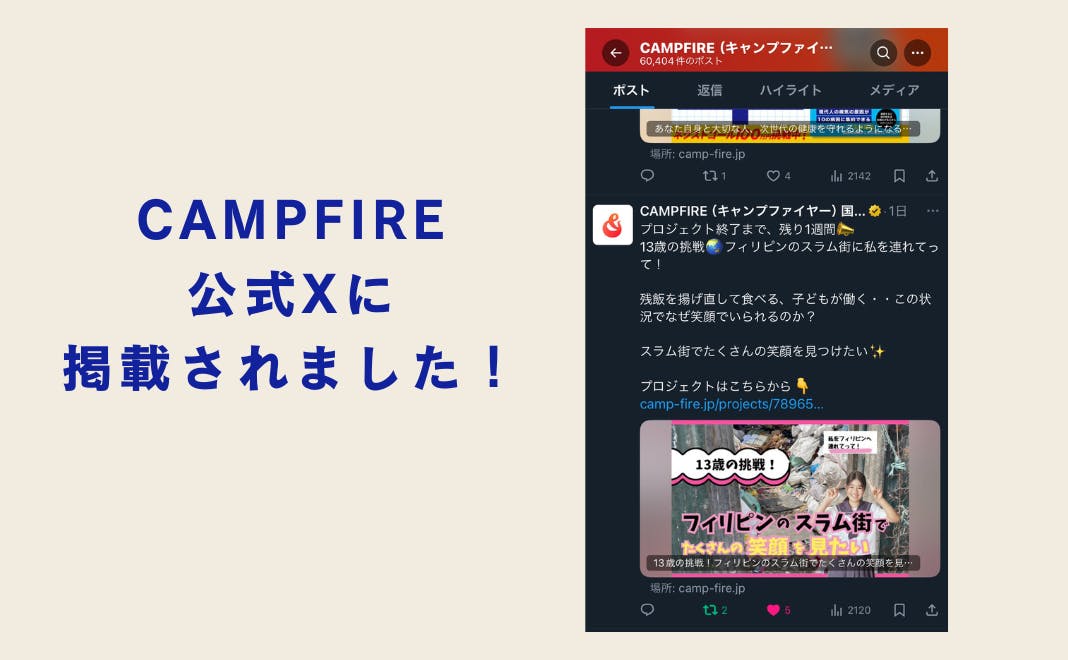 また先日、CAMPFIRE公式Xでもプロジェクトが紹介されました!