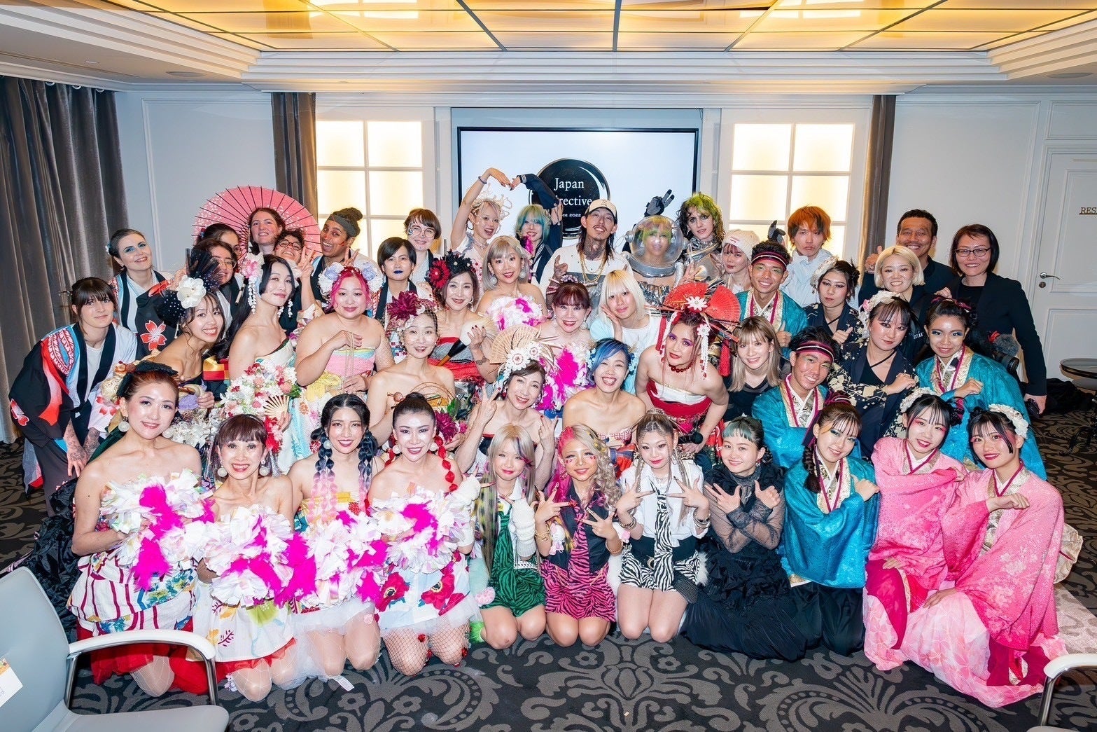 みなさん、こんにちは!続々とご支援ありがとうございます!パリコレでのカメラマンさんが撮影してくれた集合写真が届きましたので、シェアします。今回、私たちはジャパンダイレクトというグループに参加してパリコレでチアを踊りました。ここに写っているのは、同じ会場でパフォーマンスをしたみなさんです。どのチームも和の文化を大事にしたパフォーマンスで、控室ではお互いの活動について語り合ったりして応援し合いました。パリから日本の文化を世界に広げられる活動の一員としてこのチームに参加できたことを誇りに思い、今後も、女性が笑顔になれば、世界が元気になるをモットーに活動していきます。