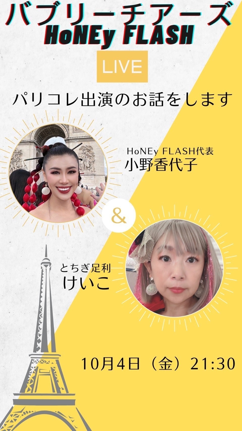 今日はインスタライブのお知らせです。パリコレ出演メンバー1人ずつと、代表の小野香代子が対談形式でお話をします。パリコレ出演についてのあれこれをお話しします。まず1回目は10月4日金曜日21:30からです。インスタをフォローして観てもらえると嬉しいです!ライブ中の質問も大歓迎です!https://www.instagram.com/honeyflash_cheerdance/profilecard/?igsh=MTVwdWg5eGl0M3Q3dA==