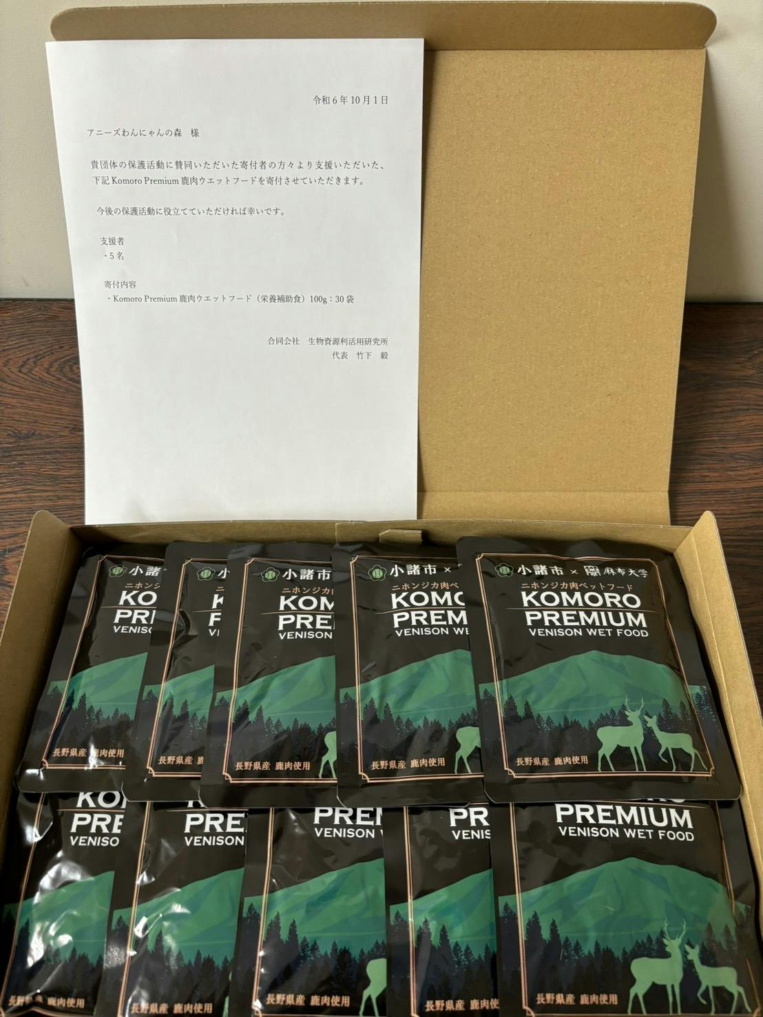 KomoroPremium鹿肉ウエットフードの寄付について