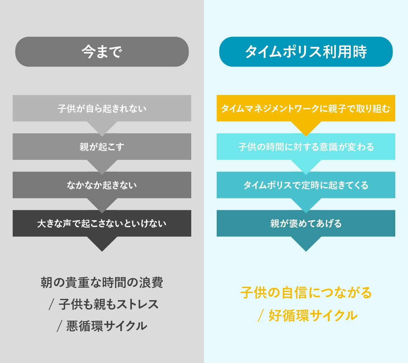 「タイムポリス」は、子どもが自らの力で時間を意識し、元気に一歩踏み出すきっかけを提供します。