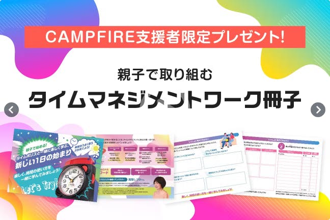 クラウドファンディングのこの機会に、「MAG大音量目覚まし時計タイムポリス」を手に入れると、親子で向き合う時間の使い方冊子がセットになっています。このセットを通じて、時間管理の重要性を学びながら、子供が自ら早起きできる力を育てましょう。