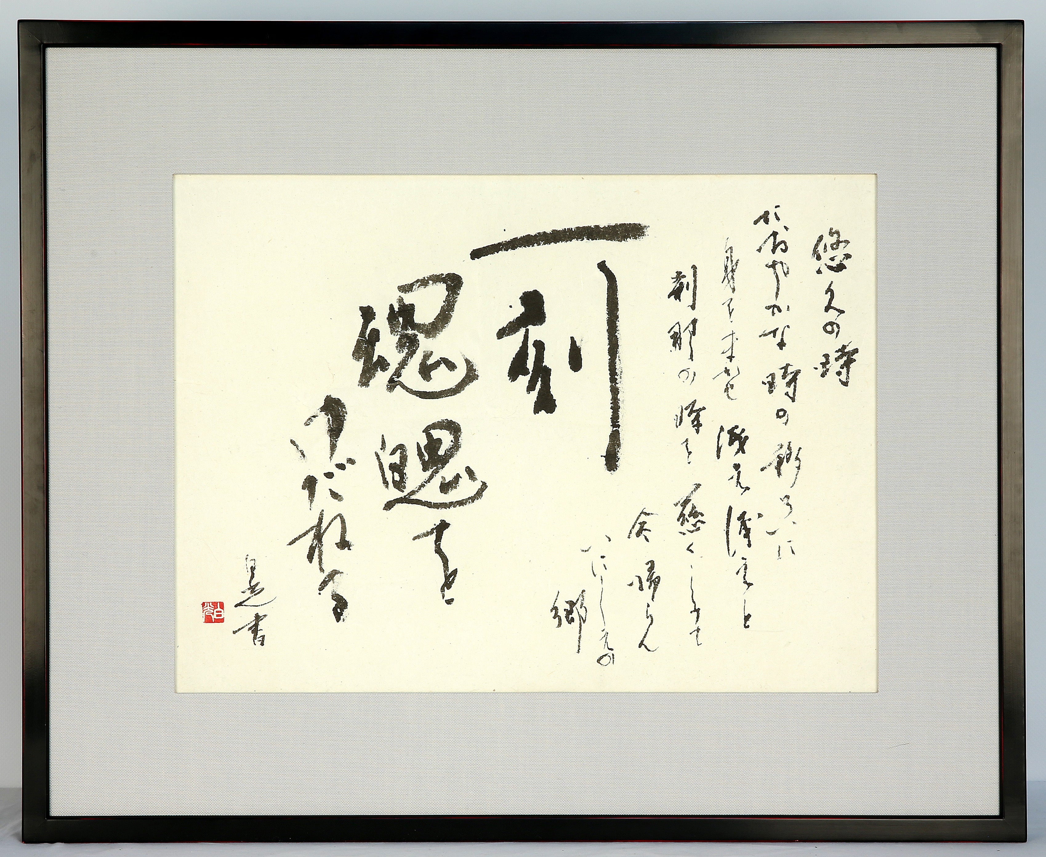 伊勢神宮、明治神宮、靖国神社などに作品が奉納されたほか、2011 年、沖縄県護国神社の美智⼦皇后(現上皇后)陛下御歌の記念碑に揮毫。また、東⽇本⼤震災復興のプロジェクトも積極的に⾏い、2012 年にはニュージーランド・クライストチャーチの震災と東⽇本⼤震災の復興の橋渡しも⾏った。 ⾳楽家とのジョイントで書を揮毫する海外公演も多く、ロシア、ハワイ、ロスアンジェルス、イスラエル、モンゴル、ネパールなど世界各地で公演し、フランスのオペラ座にも出演した。