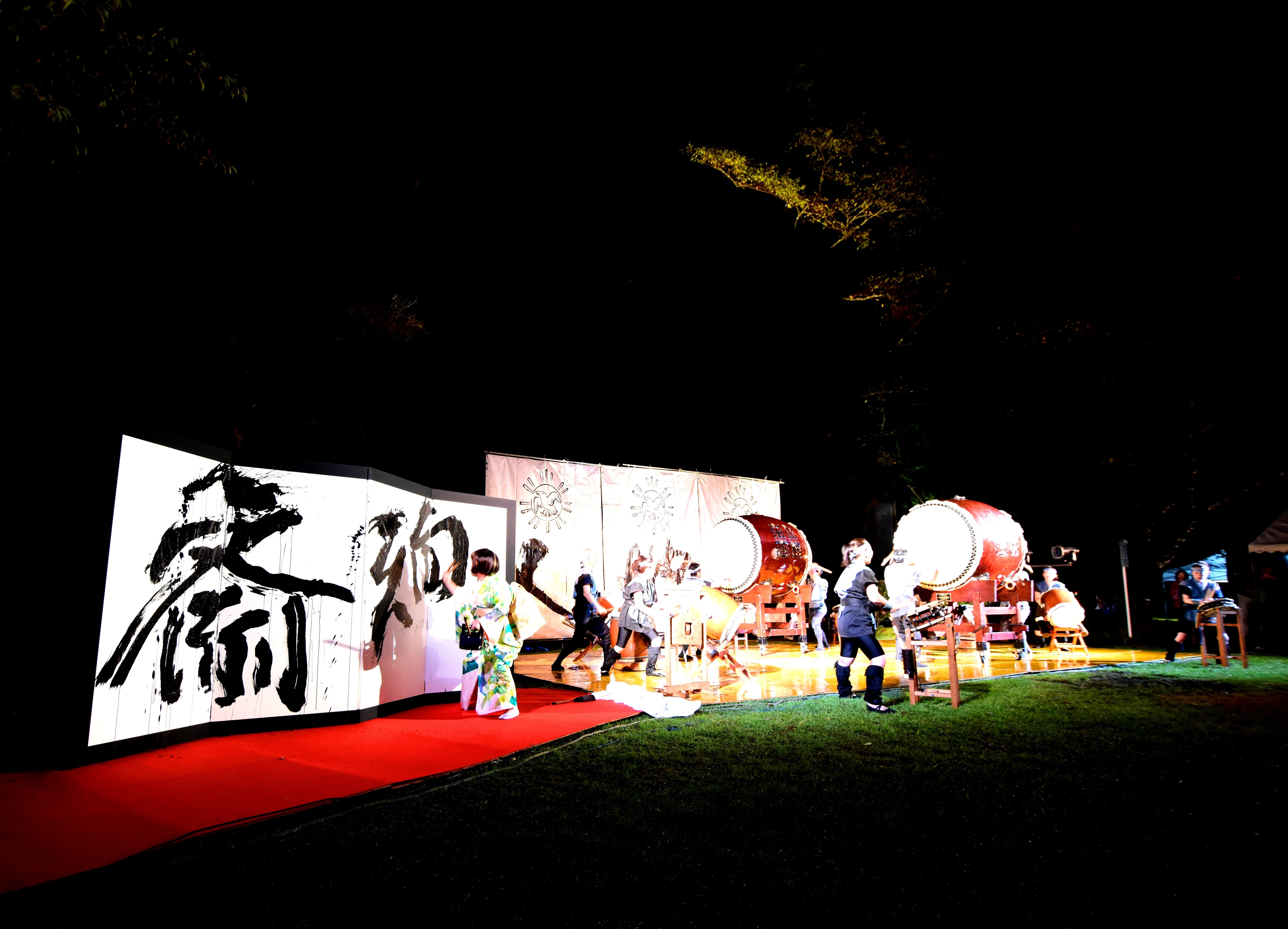 柏⽊⽩光が墨アートを通じてかたちにしてきた熊野古道の世界を多くの⽅々に体験してほしい。その想いが叶い、ユネスコ世界遺産登録20周年記念展覧会として、10⽉5⽇から20⽇、「書家 柏⽊⽩光作品展 『天と地』 熊野古道をめぐる書巡礼」が開催される運びとなりました。会場は熊野本宮⼤社にほど近い「世界遺産熊野本宮館」(和歌⼭県⽥辺市本宮町)、主催は熊野本宮観光協会です。