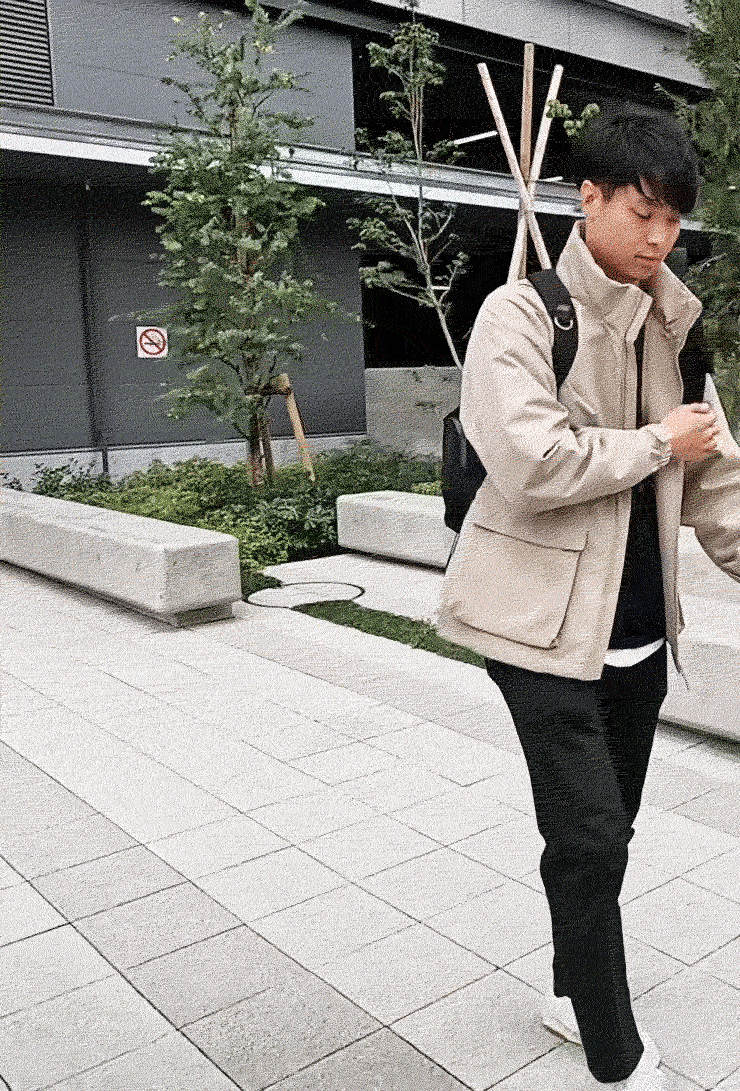 通勤・通学はリュックに取り付けてポケットバッグとして使用し、お昼休みはリュックから取り外してショルダーバッグにしてコンビニへ。用途に合わせて使い分けることができます。