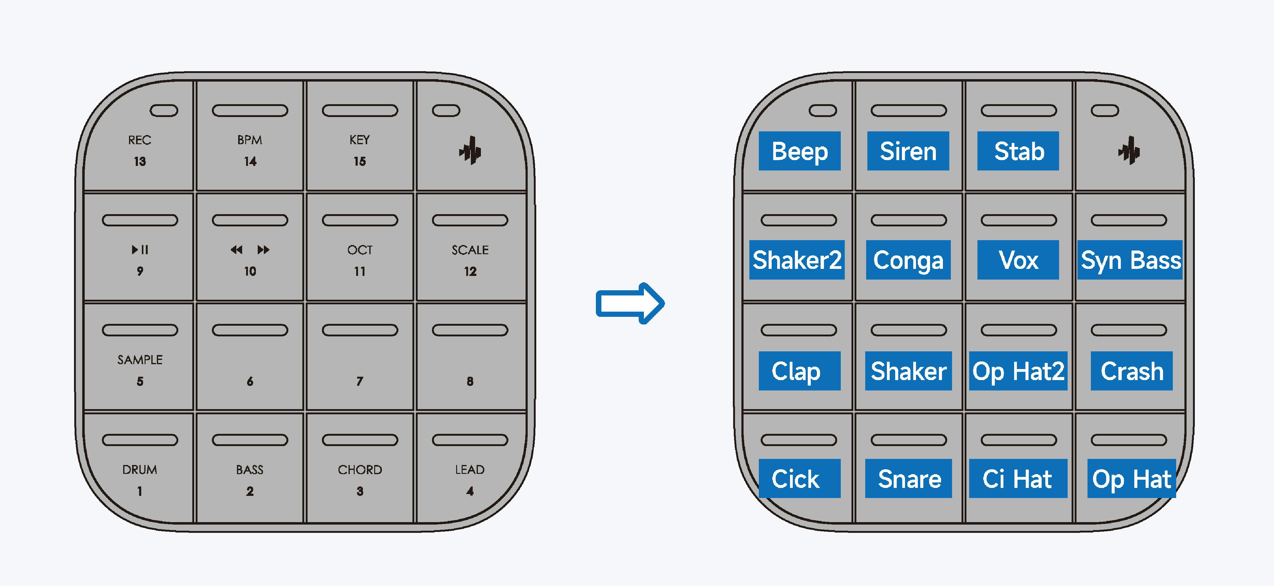 操作パネルのタッチ操作とモーション センサーの組み合わせにより、即興で楽曲に魅力的な効果を加えられます!演奏しているときに、MEDOを振ったり、ドラムモードで側面をタップしたりしてみてください。