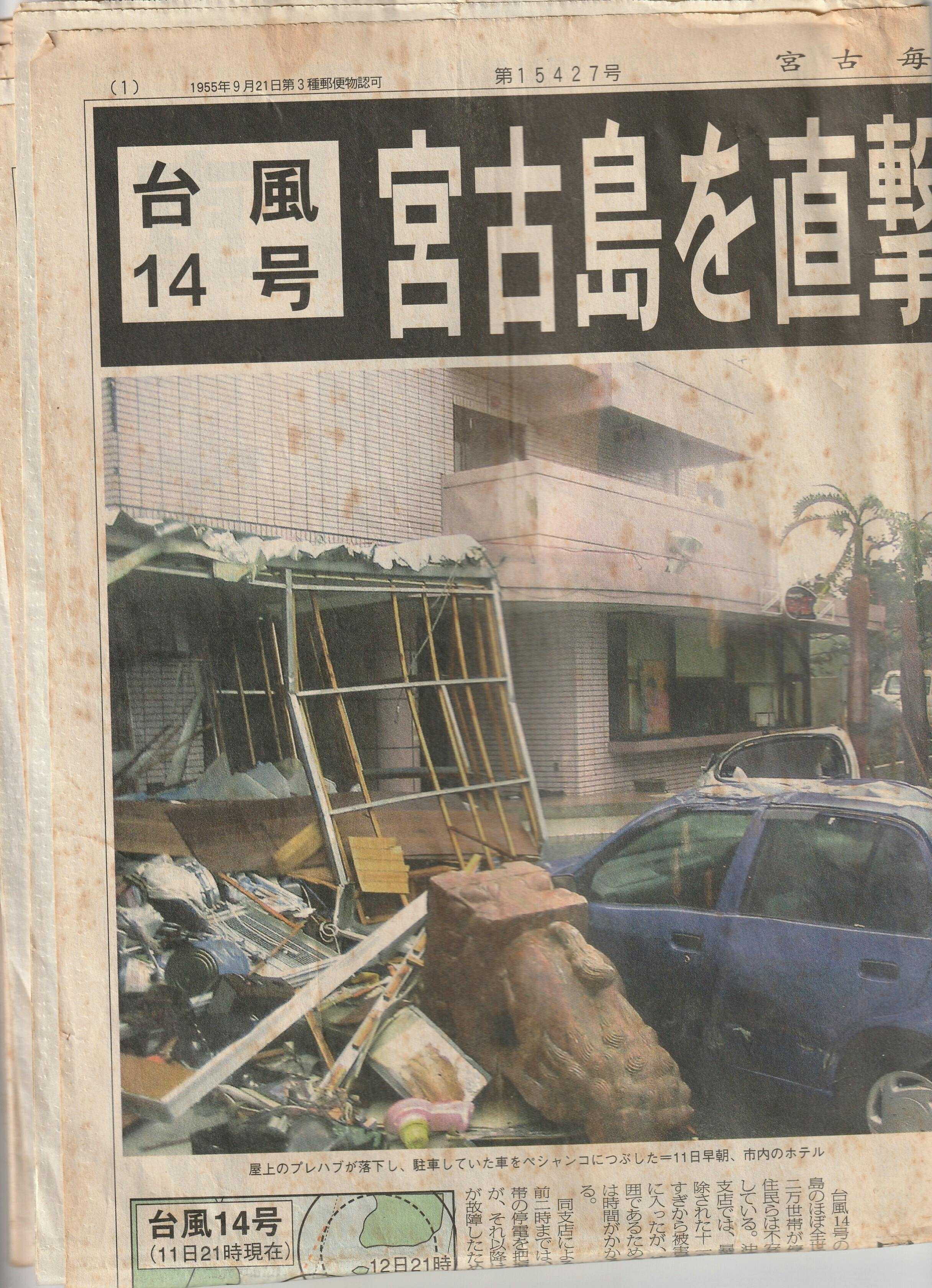 台風が去った後の被害状況の記事を見ると本当に威力はすごくて、実際多くの家屋や、頑丈なガラスを入れているホテルの窓が破壊され、最強に強い2重ガラスで覆われた宮古空港の管制塔の窓ガラスさえも吹き飛ばされた!