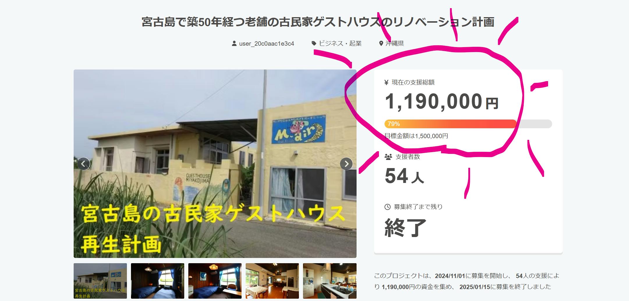 11月から開始した「ゲストハウス宮古島再生計画」のクラウドファウンデーションが終了しました。