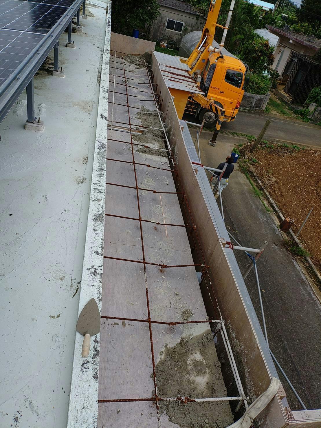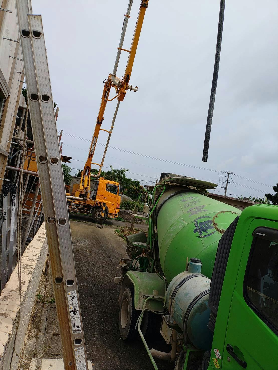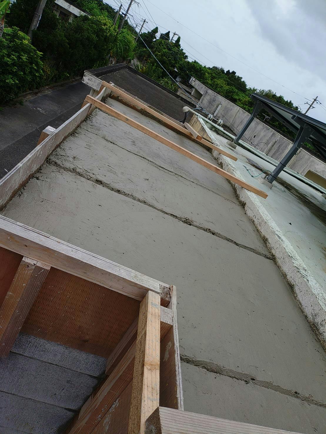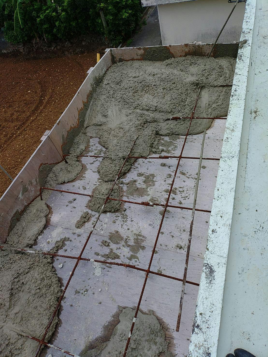 もちろんこれは業者を呼んでの作業です。過去に自分でセメント練って屋根まで持ち上げて流し込む作業したことあるけど地獄のようなキツさだった(汗)