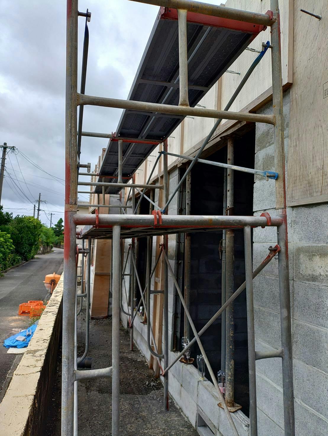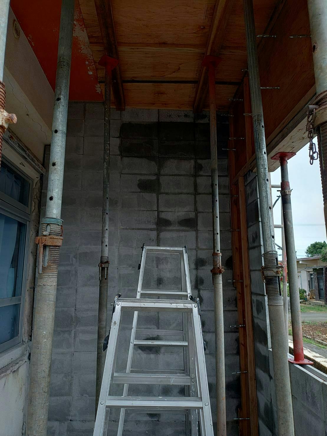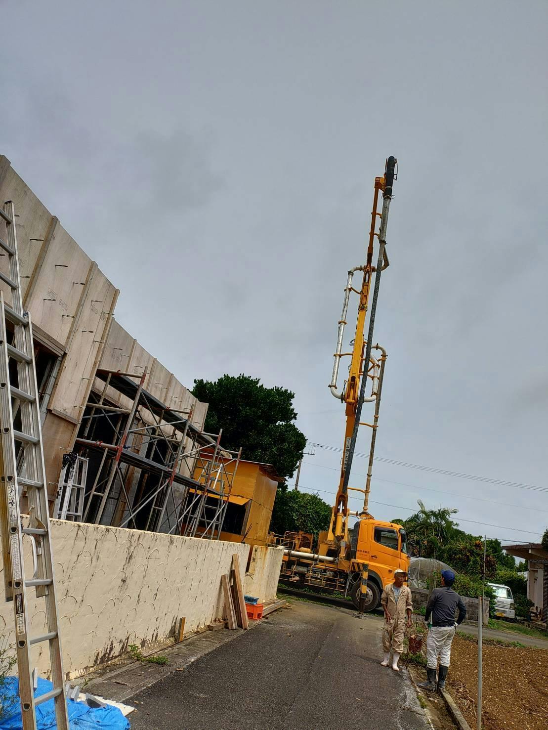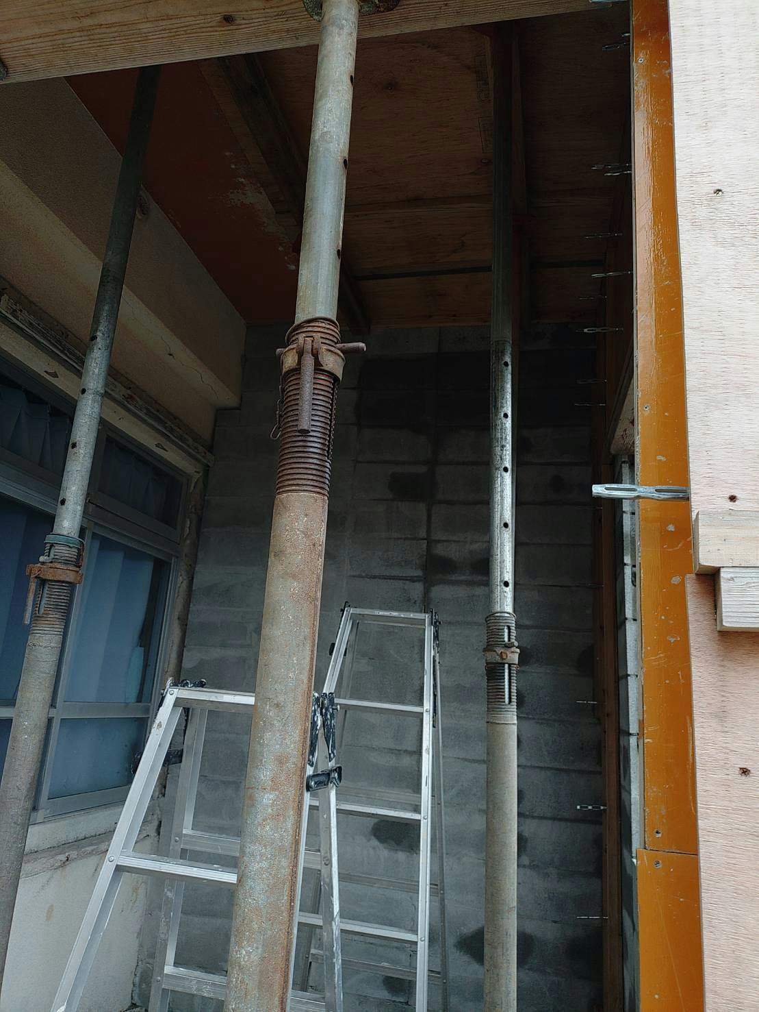 もちろんこれは業者を呼んでの作業です。過去に自分でセメント練って屋根まで持ち上げて流し込む作業したことあるけど地獄のようなキツさだった(汗)