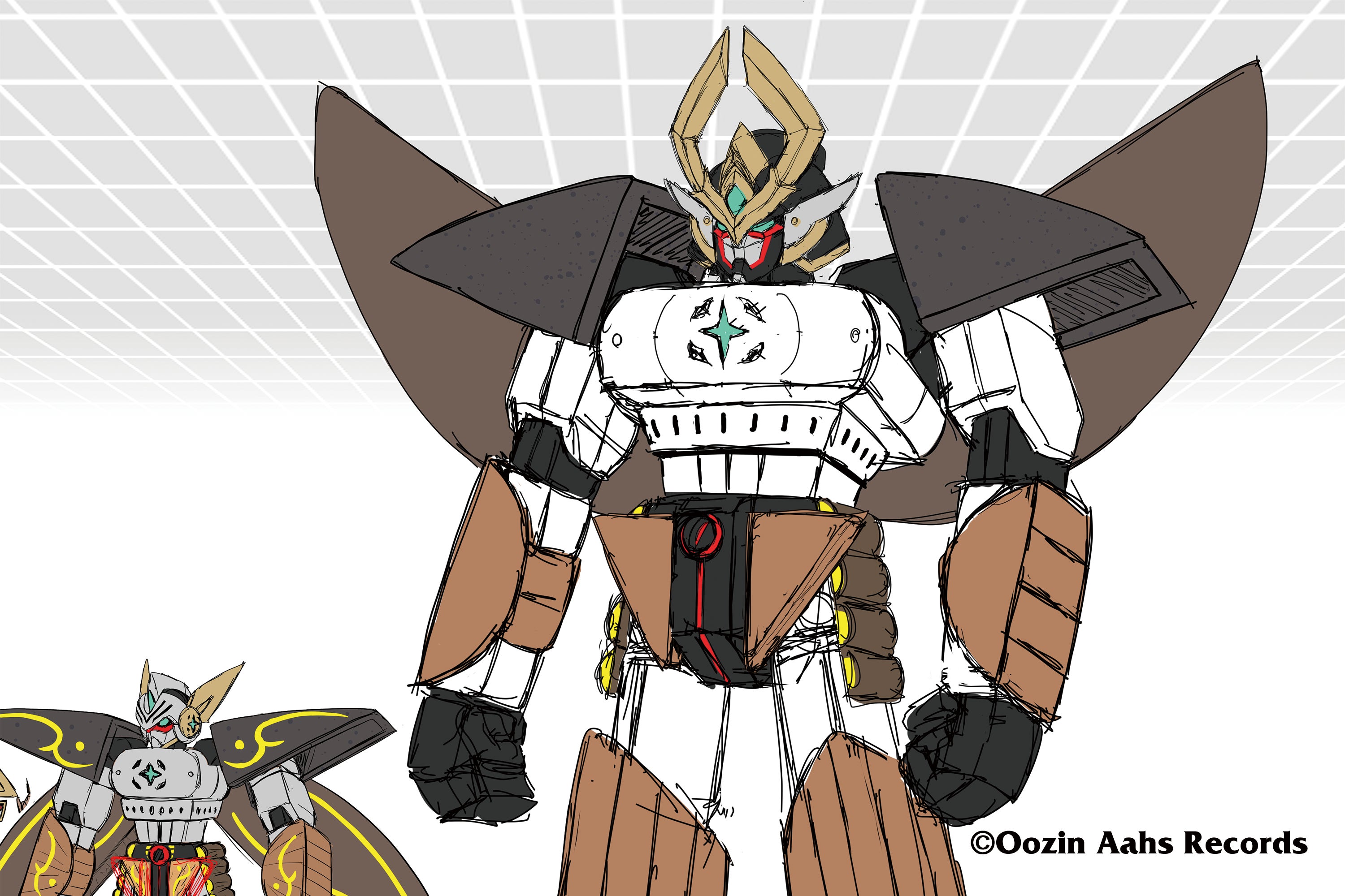 「煮物合体シズオカオデン」ラフ案 「煮物合体シズオカオデン」のイラストを担当させて頂きました。普段ゲーム制作などでメカデザインをすることはありますが、今回の『おでん』というモチーフは特に経験がなく、さらに食品部分はそのままの状態ですから、メカ部分との馴染み具合や、デザインとして見た時の成立具合など、難産だったと思います。数多のアイデアの先に生まれた本商品のビジュアルを是非楽しんで頂けましたら幸いです……!