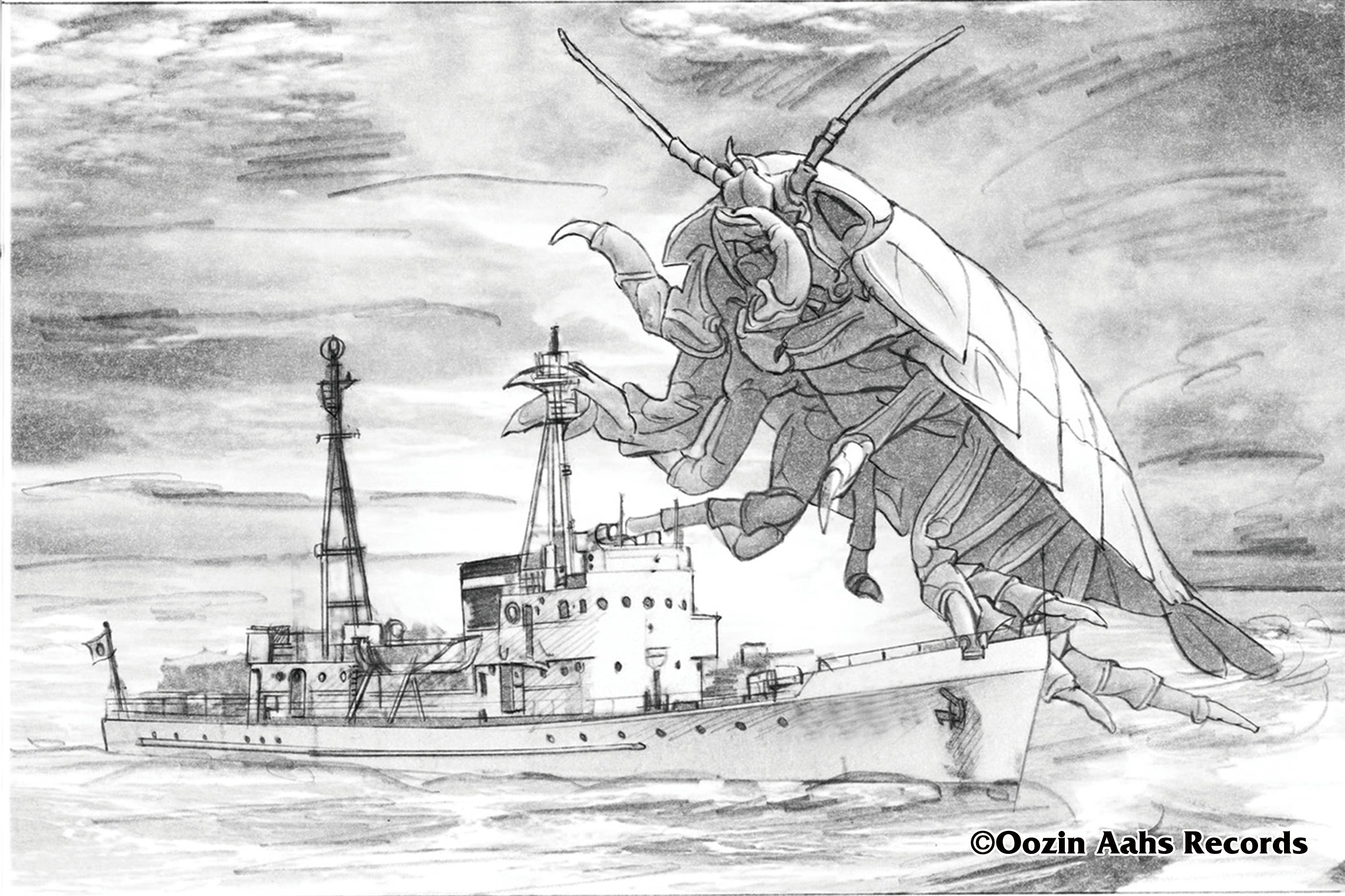 静岡のお土産売り場で新たなお土産として販売し、中身を地元の原材料と地元の生産者で生産する。このパッケージも地元のイラストレーターの絵にしたいと、静岡市出身の私のところに絵の依頼がきました。このプロジェクト全体のお話を伺い、絵の制作で応援させていただくことになりました。現在もプラモデルの箱絵を中心に活動していますが、今回のようなパッケージイラストは初めてです。大きなオオグソクムシが怪獣のように現れていますが、本当は優しい性格なのかも知れないと色々想像しましたが、あまり可愛い絵にならないように、模型の箱絵と同じ実物をイメージして描いています。