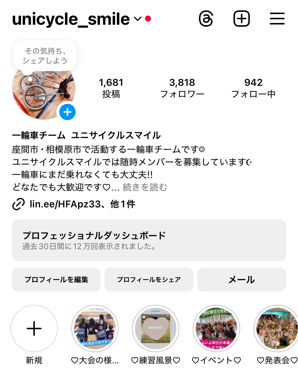 私たちはこれまでインスタグラムで練習風景や出場する大会などの発信や、地域のイベントへも積極的に参加するなど一輪車の楽しさや魅力を伝えるための活動してきました。