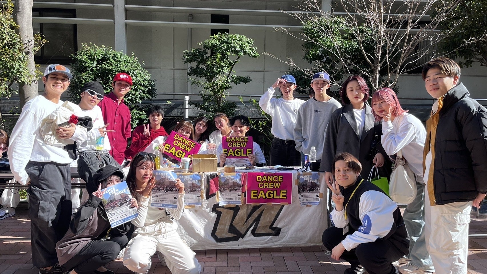 私たちは上智大学公認インカレダンスサークルdance crew EAGLEです!EAGLEは今年で創立20周年を迎え、現在18期から20期の約230名で活動しています。