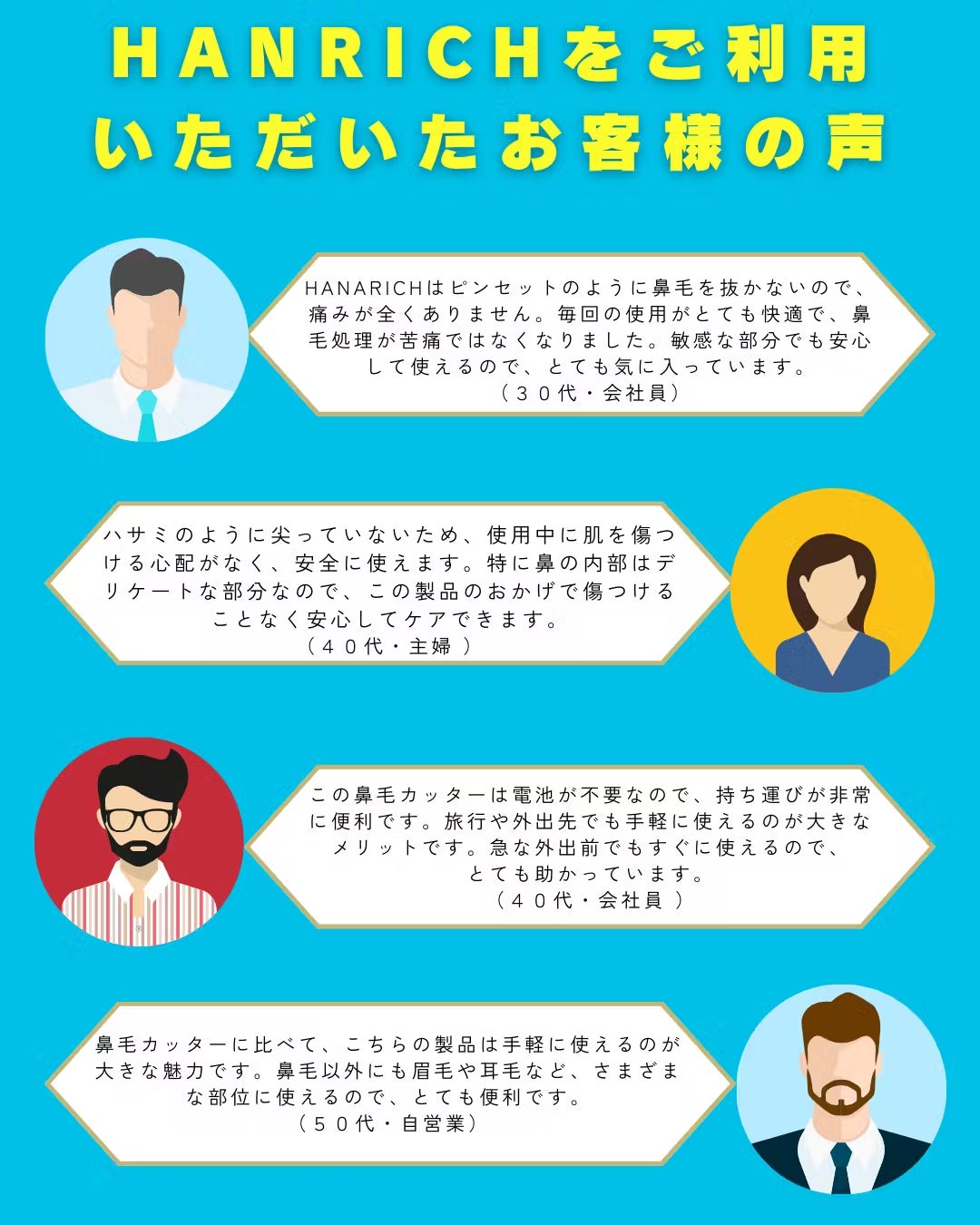 HANARICHは、”鼻毛をカットしない”デメリットを排除し、”誰でも簡単に鼻毛をカット”
