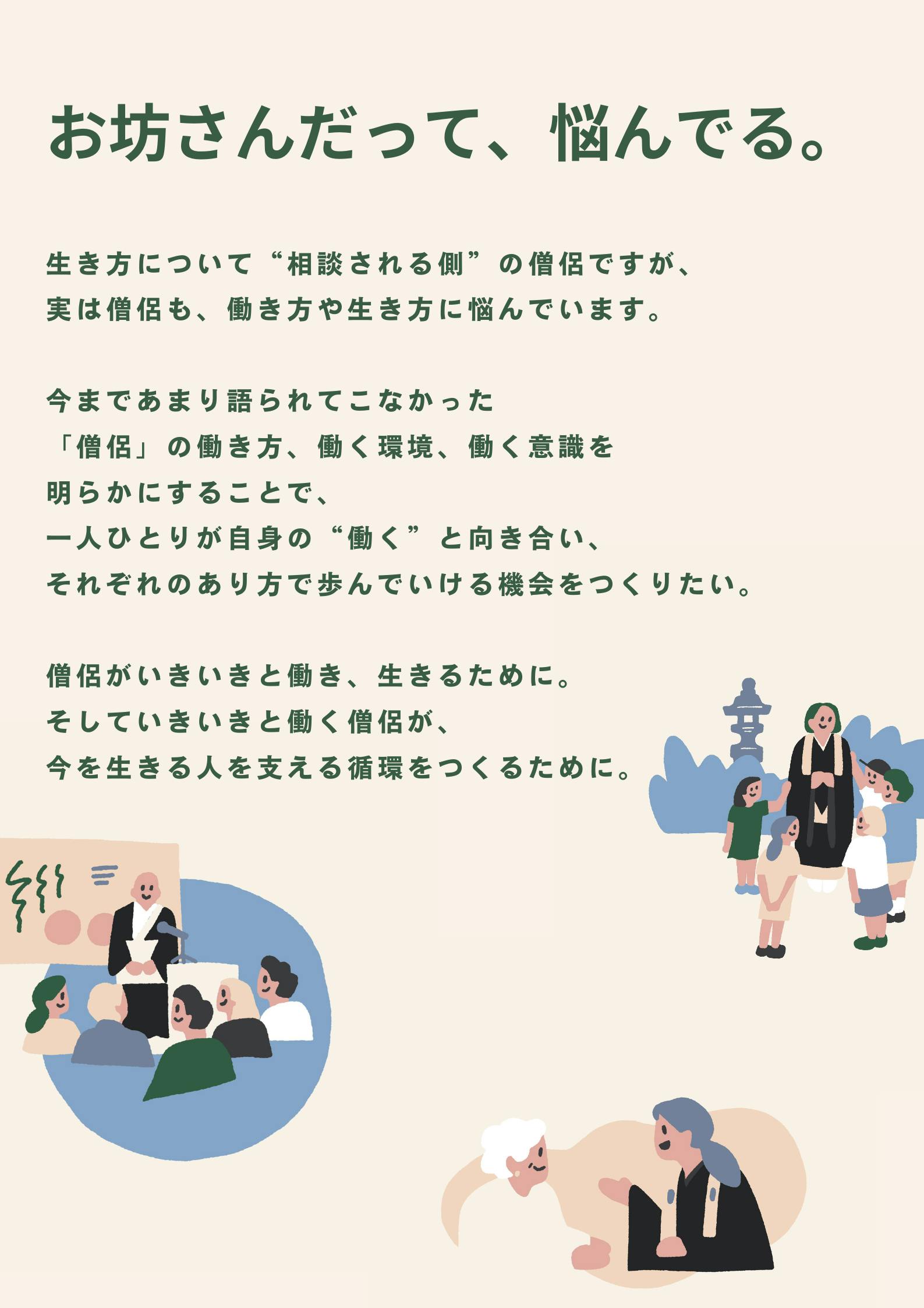 本冊子を起点に、「僧侶の働き方」についての議論が、広くなされるようになって欲しいですし、一緒に向き合い、考えてくれる仲間を必要としています。