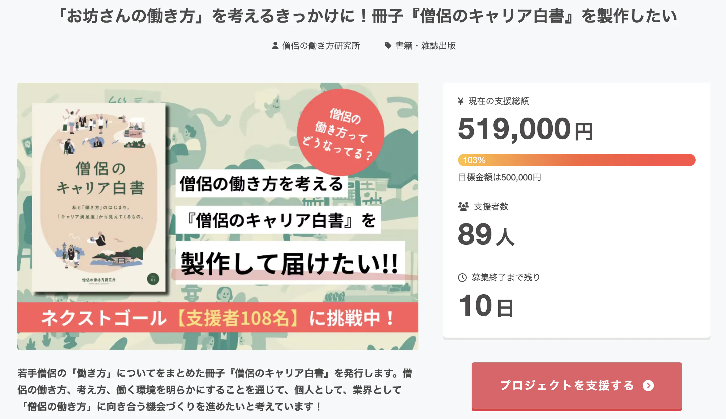 本プロジェクトを起点に個人や業界が「僧侶のキャリア(働き方・生き方)」について考えること、向き合うことを当たり前にしたいというのも、目的のひとつです。少しずつですがそうした機会をいただけていること、本当に感謝いたします。